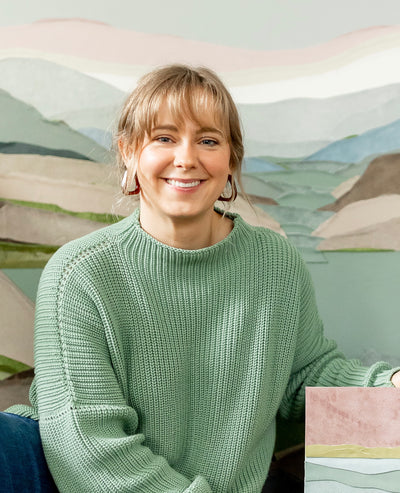 My passion as an artist comes from a life-long desire to create. Growing up with a parent in the military, I was consistently moving around from one place to the next, all the while collecting shapes, places and colors to put in my back pocket and one day use. I was always a painter but started to expand my idea of what could and couldn't be used as art in high school and continued until I finally found my material of choice while in college doing a project made of scrap textiles, including leather and other recycled materials. Years later, in 2018, I started my embarkment as an artist experimenting with different mediums and textiles that slowly evolved into my primary use of leather today. Currently, I live in Memphis, Tennessee with my husband, Alan, and our child, Arrison. When I'm not in the studio, we are often found enjoying local parks, taking nature walks led by our little one. Inspired by the landscapes I grew up seeing and my travels, I soak in my surroundings and then illustrate them in my own way through collages. I am always mesmerized with the way the calming colors and soft layered textures of my pieces can speak to others without using words. A little leather on a wooden panel creates a shared experience between you, the viewer, and me, the artist. This connection brings me such joy and compels me to create the way I see the world: full of color and unsuspecting textures.