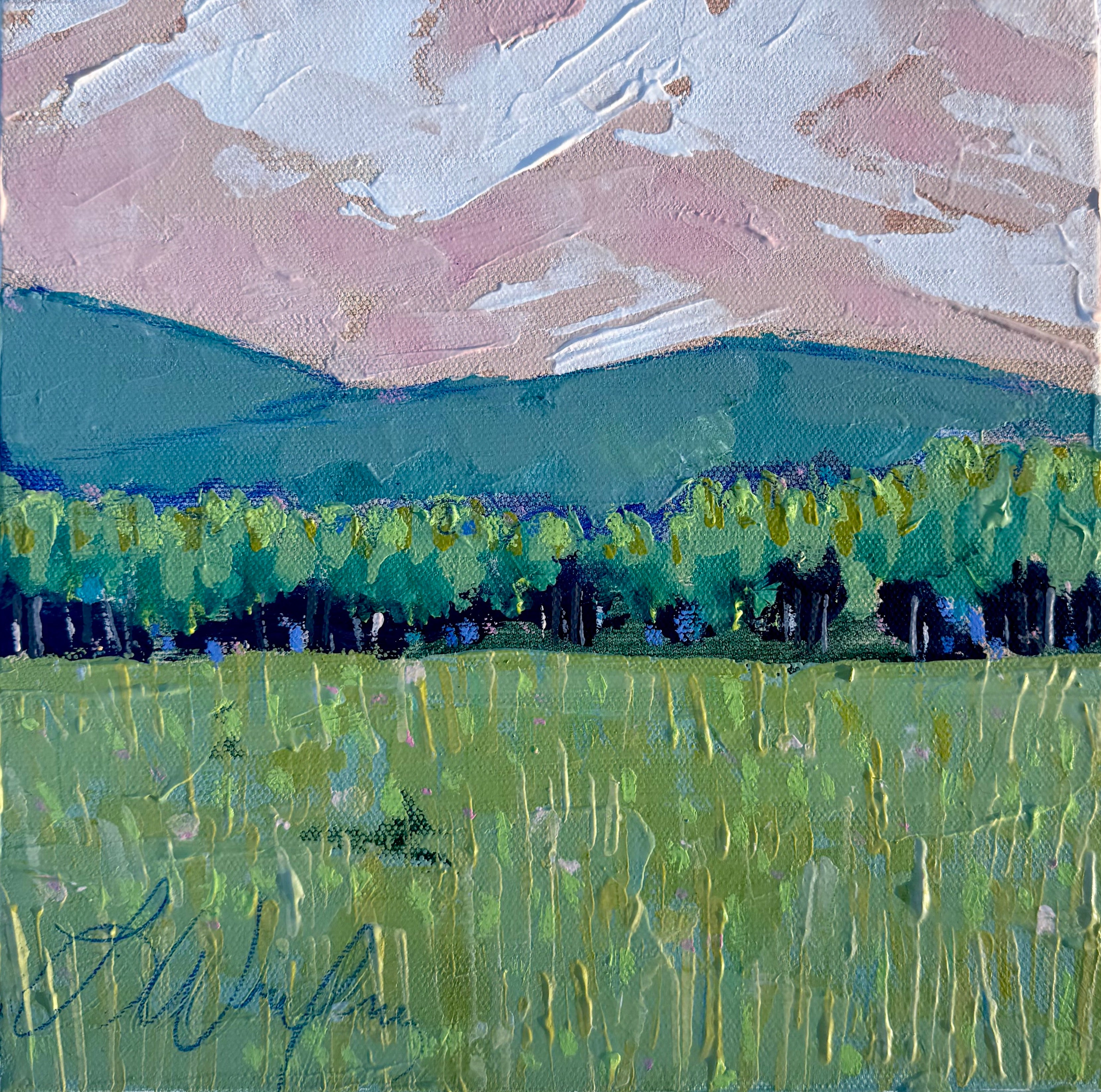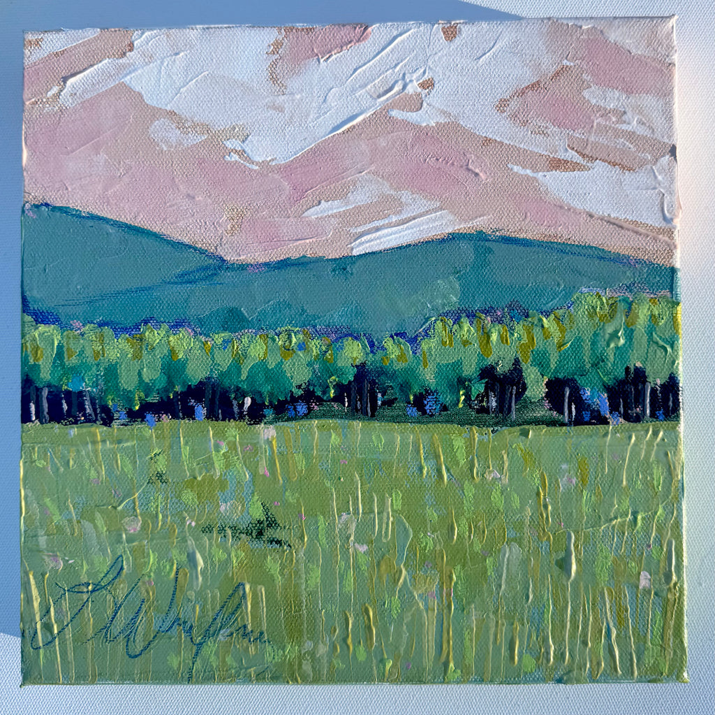 Lindsey’s paintings are an escape and journey - a time to relish the process of creativity: the brush strokes, the layers, the juxtaposition of colors. She works primarily with acrylic paints for their intensity of color and the ability to layer and create textures with various acrylic mediums and gels. A native of Lynchburg, Virginia, Lindsey’s landscapes generally focus on special places that she has known all her life, including fields at the foot of the Blue Ridge Mountains and the pristine beauty of the Cowpasture River. Working from onsite sketches and photographs, she mixes observations with her own personal memories and feelings of how she perceives a place. In addition to being an artist, Lindsey is a full-time art educator, wife, and mother of two young children.