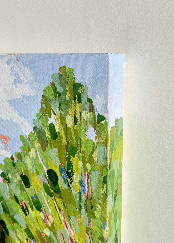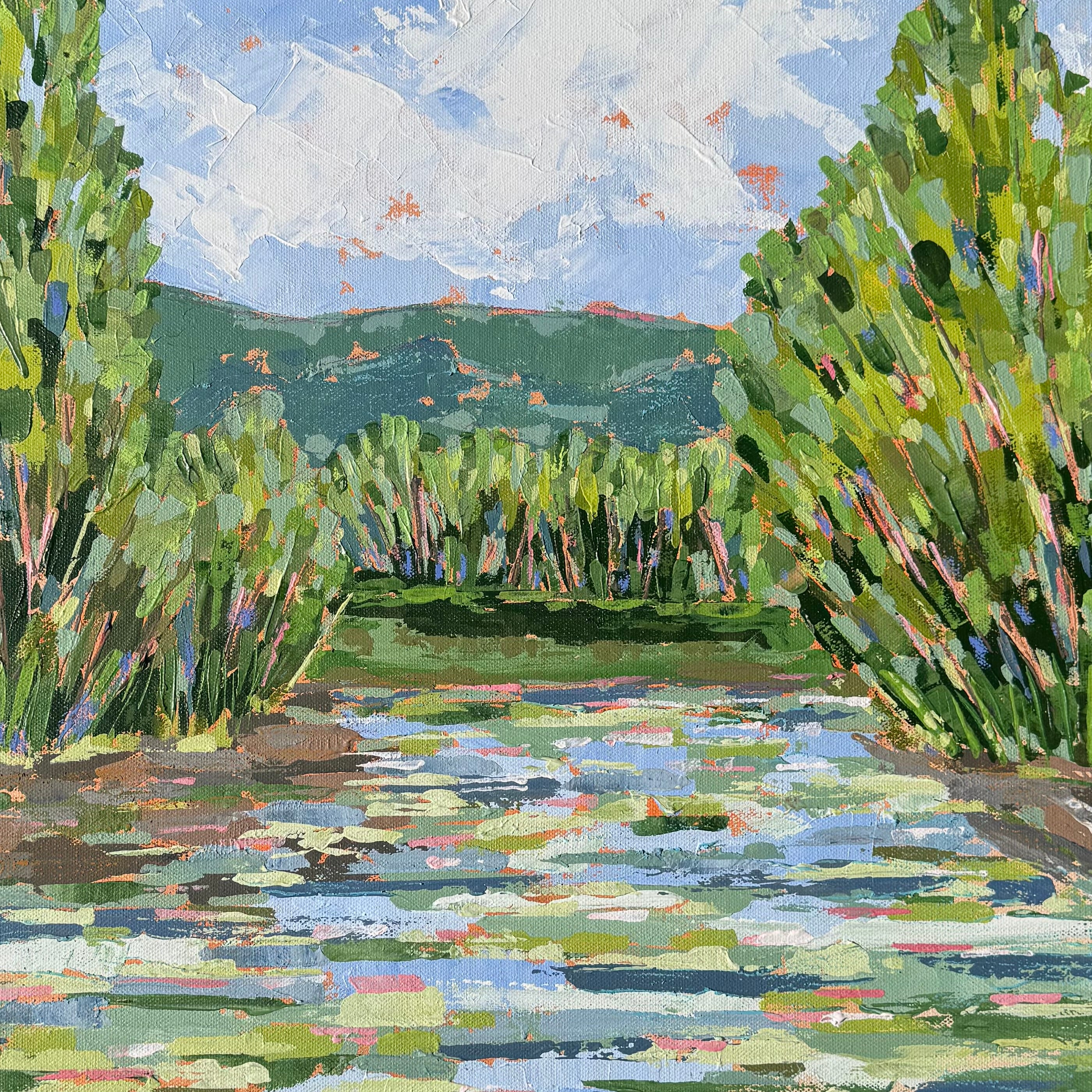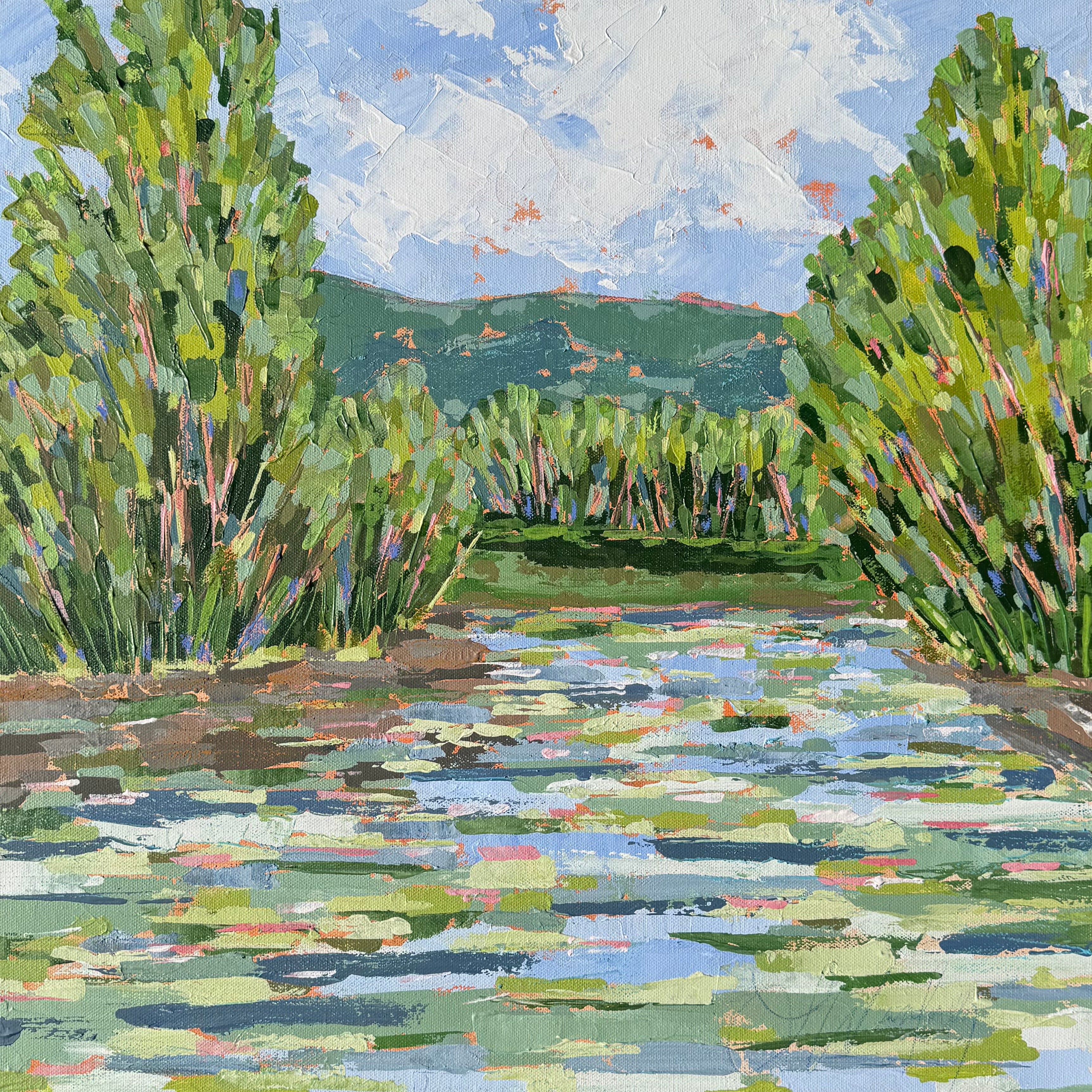 Lindsey’s paintings are an escape and journey - a time to relish the process of creativity: the brush strokes, the layers, the juxtaposition of colors. She works primarily with acrylic paints for their intensity of color and the ability to layer and create textures with various acrylic mediums and gels. A native of Lynchburg, Virginia, Lindsey’s landscapes generally focus on special places that she has known all her life, including fields at the foot of the Blue Ridge Mountains and the pristine beauty of the Cowpasture River. Working from onsite sketches and photographs, she mixes observations with her own personal memories and feelings of how she perceives a place. In addition to being an artist, Lindsey is a full-time art educator, wife, and mother of two young children.