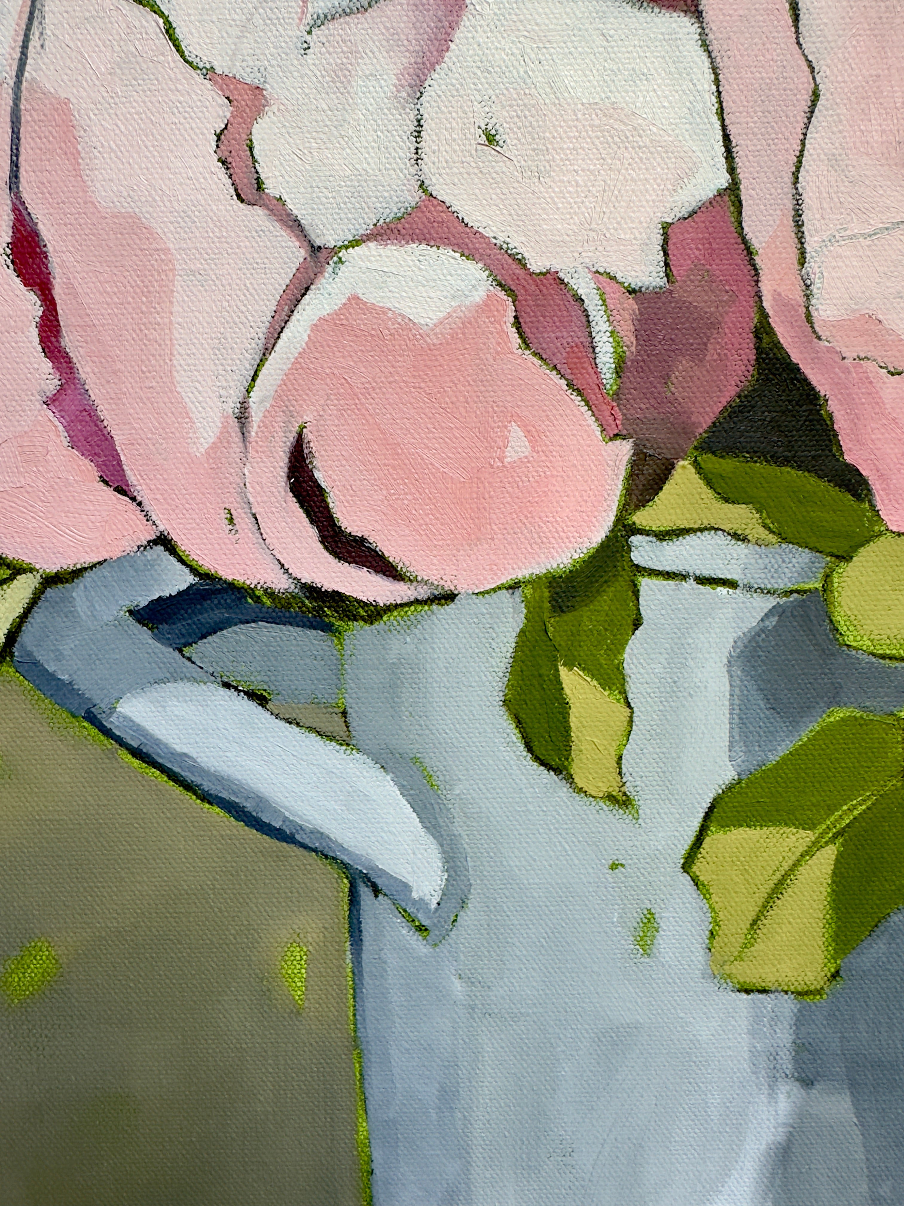 Pamela’s intention as a painter is to speak to the elegance of place and object; to use paint as a means to capture an image and then to reduce the noisy elements in landscape, botanical or interior subjects, by breaking down busy images into an economy of shape and hue. “I love a quiet place. I love to have the brain space to allow my mind and my eyes to soak in the images of my world. In the same manner, the image I want to paint must also speak to my need for simplicity and peace. Our world is a busy, loud and cluttered place. I can paint those elements out, leaving only lovely positive and negative shapes, made with colors that love to be together...” Painter and avid gardener who is fascinated with color, inspired by music, good reads and lessons to learn, Pamela works from her studio with windows that let in the woods of Northeast Georgia, where she lives with her husband Van, dog Tuck and friendly wildlife.