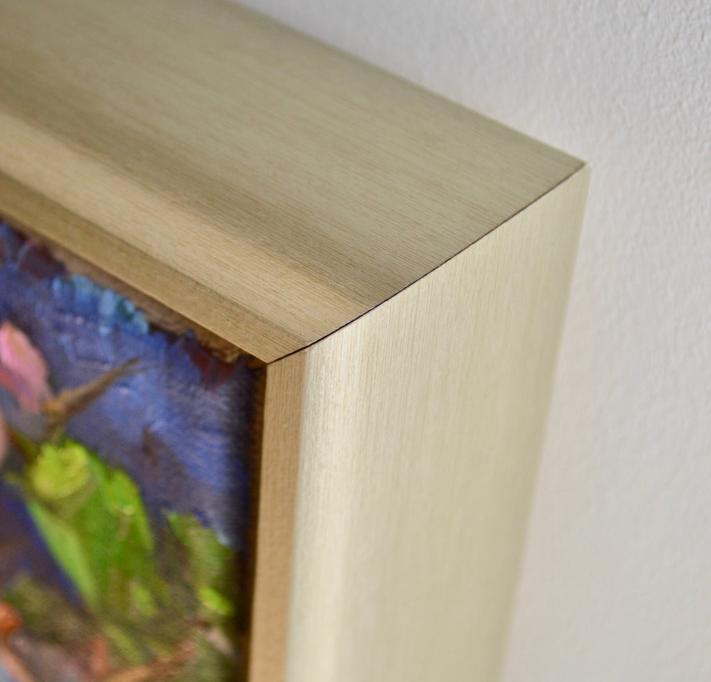 oil on canvas, in matte silver floater frame