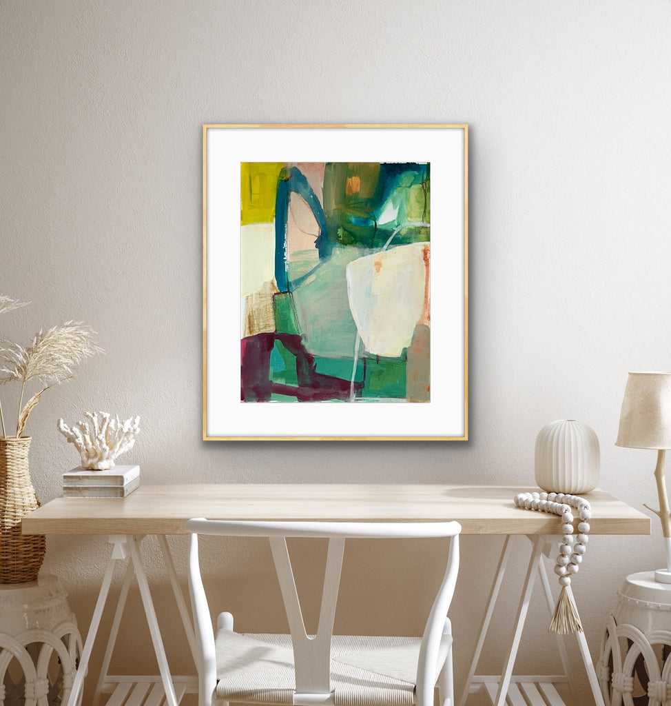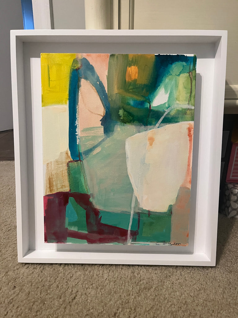 I find ultimate freedom in abstract expressionism and as such, I’m in search of the best way to convey who I am at the moment of creating. It is not to say it is a free-for-all; there is still structure within. I implement the same principles that realist painters employ with the absence of representation: composition, hierarchy, variety, juxtaposition are vital to a successful painting. But I do not limit myself to one medium or the other. I work in oil, acrylics and gouache and depending on what I’m exploring at the time I will choose one or more to express it. I also explore through a combination of paint and collage. It is through all of these various methods and mediums that I am able to share my fullest expression of self and my authenticity. My paintings ultimately are self portraits that are created from both past experiences and also future hopes and dreams. It is my goal to invoke a feeling for the viewer. When it does I have succeede