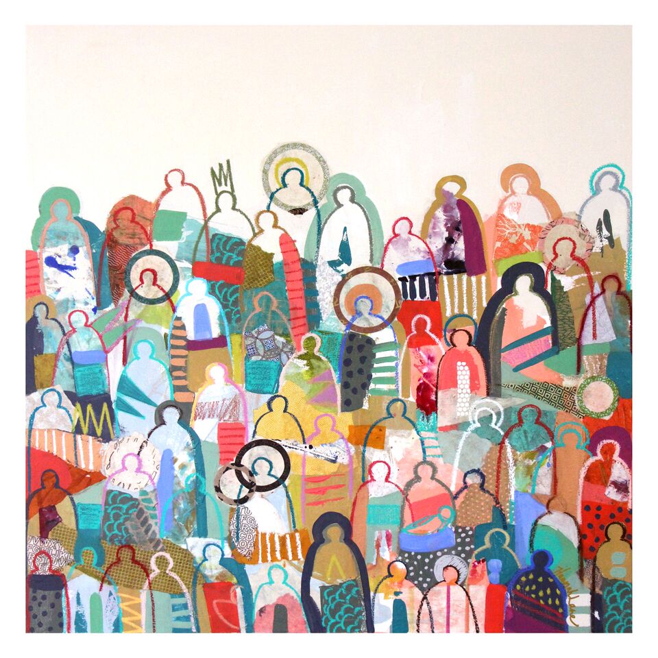 Hannah Lane is a contemporary mixed media artist celebrated for her bold use of color and dynamic, collage-like layering. A Louisiana native and graduate of the Savannah College of Art & Design, Hannah draws deep inspiration from the vibrant landscapes, diverse cultures, and heartfelt sense of family and community found in her southern roots. Her work blends pigmented Japanese papers, expressive line work, and rich washes of acrylic paint to create textured, energetic paintings. Each collection reflects her love for nature, storytelling, and community—an invitation to explore the beauty of her inner imagination. Hannah is represented by some of the top galleries in the Southeast, and her paintings are collected privately and in corporate spaces across the country. She also loves working one-on-one with collectors to create meaningful, custom pieces. After living and painting in Italy and New Orleans, Hannah now calls Nashville home, where she is part of a thriving art community. When she’s not painting in her home studio, you’ll find Hannah hiking with her boys, reading, or cooking up something seasonal and delicious! The crowd series is one of my most iconic collections, inspired by my big, beautiful Louisiana family and the joyful spirit of southern gatherings. I grew up surrounded by cousins, friends, and neighbors—many from families as large and lively as my own—where faith and family were at the heart of everything. Over the past 12 years, this series has evolved with new patterns, papers, and symbols that reflect the changing seasons of life. Each crowd painting is a kind of meditation, a reflection on the deep truth that we’re all connected. Rich with personal symbols and intuitive mark-making, these pieces push the boundaries of mixed media and invite you to see something familiar in a new way. Whether you're drawn to the vibrant energy, the quiet details, or the sense of belonging they evoke, each crowd carries its own unique aura—waiting for the right person to bring it home.