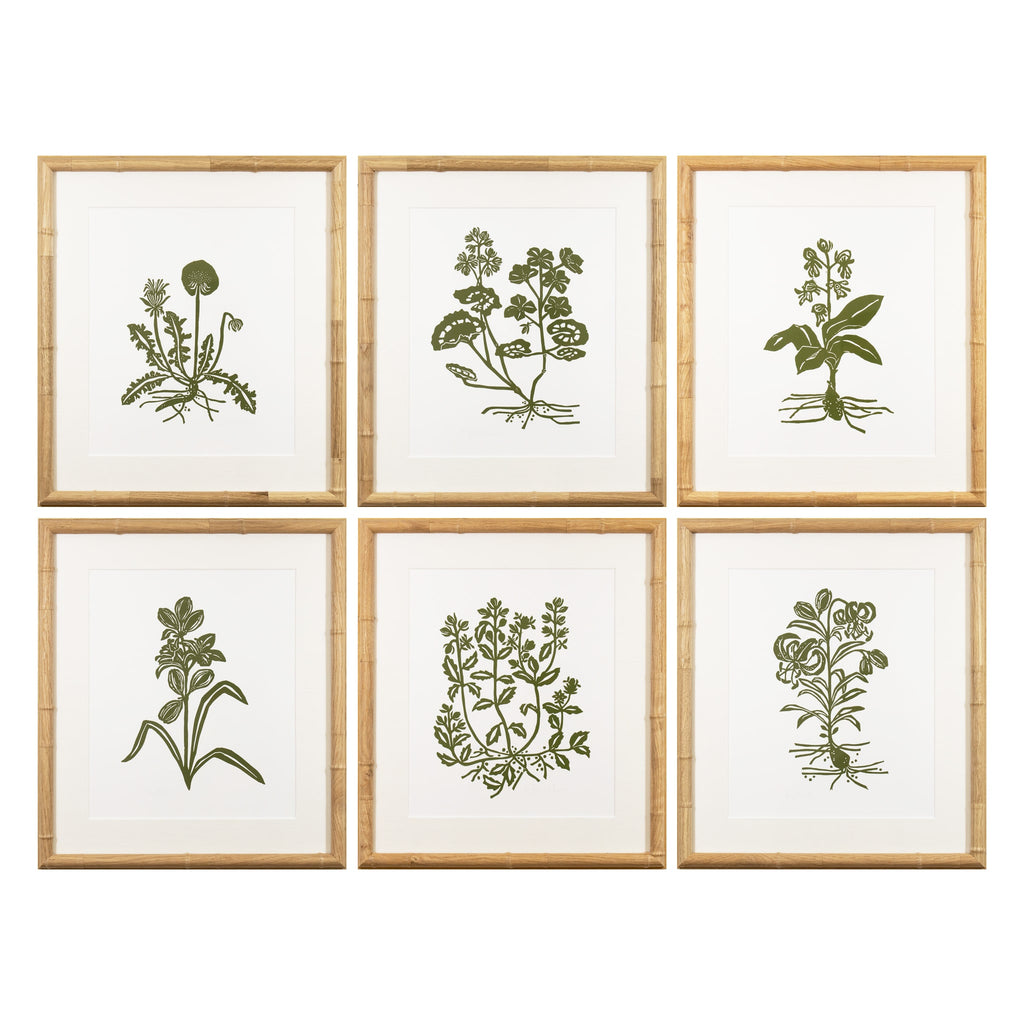 hand-carved and hand-printed linocut, floating on white linen mat, framed in natural bamboo frame