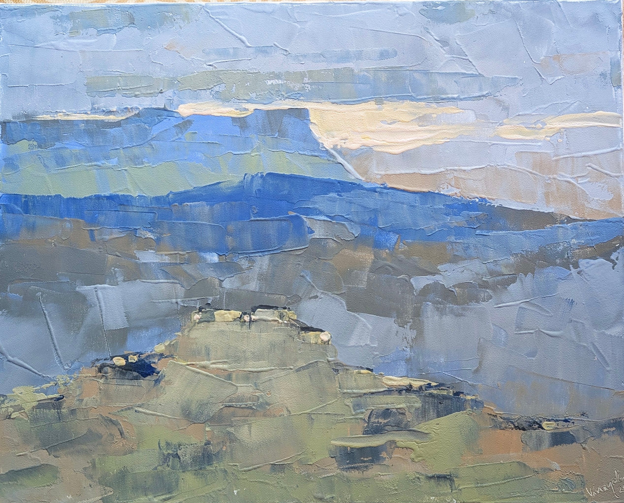 The central element in each of my paintings is the use of color. Nature and people serve as elements for my compositions. Composing flat components in muted, layered impasto blocks invites viewers to explore and discover happiness. I have always been curious about why people either like or dislike paintings. This curiosity led me to consider how feelings can be triggered by muted expressions. As a result, my compositions often convey a passive tone and gradually elicit a parasympathetic response. I began my art career by painting portraits on commission in the 1970s. I studied portrait and landscape painting at the Chitra Mandir Art Institute in India. In recent years, I have transitioned from oil and watercolor to acrylic and impasto styles, using palette knives to enhance texture and depth.