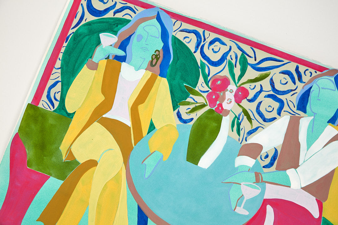 My name is Lizzy Love and I'm an artist in Nashville, TN. I create figurative works on canvas with acrylic paint and papers with watercolor and gouache. This body of work has been a rebirth for me creatively. While I've been painting full time for the last 5 years, I feel like I've really come into myself creatively with my figurative paintings. Born out of a time of uncertainty and lots of questioning, I was pushed to dig deep and get back to basics. I decided to switch gears from painting the landscapes, for which I had been primarily making for years. As an effort to get my creative spark back, I started sketching figures from magazines, a subject I hadn’t explored in a long time. Over many months they slowly evolved into what they have become; starting from detailed and realistic, to more abstract and modernist. I am a big believer that the environment of your home shapes your attitude, and for that reason I love interior design. That love is what led me to start incorporating furniture / interior surroundings / and patterns into the pieces. I pull apart and put back together the lines and shapes of many of my favorite interiors, and place them amongst the figures in a dynamic way. These ladies embody many things - community, respect, femininity, reverence. They are a way to draw attention to what being a woman entails. Many times it means being fierce and strong. Many times it means leaning on and drawing your strength from friends that are like family. While creating each piece, I draw upon the love and reverence I have for all the women in my life; the women who have shaped me, lifted me up when I needed it, laughed with me, and inspired me.