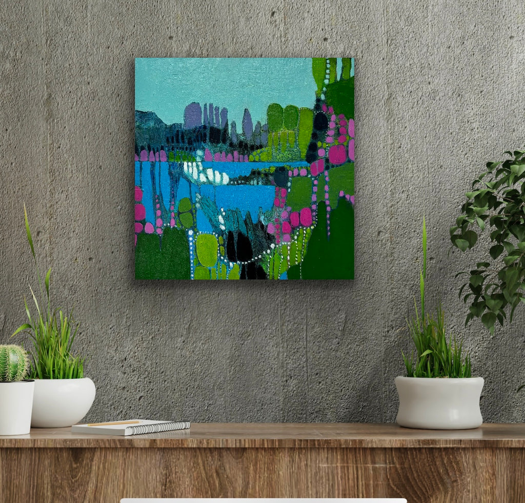 Suzanne absolutely loves color and patterns, and it shows in her work. She often uses an organic process of dripping and layering paint to achieve the effect she’s looking for. Her inspiration comes from the landscapes and people around her. She considers her work as an ongoing exploration, endeavoring to portray the natural and cultural world and those who live in it as strangely beautiful -- yet enormously fragile. Suzanne recently moved back to Virginia from Champaign, Illinois where she met her husband and raised her two wonderful children. Her academic degrees include a landscape architecture degree with an art minor from Virginia Tech and a masters of landscape architecture from University of Illinois. She’s always loved to draw and paint, and when she decided to drop organic chemistry for drawing, and forestry for landscape architecture she knew the creative path was calling her home! She’s painted much of her life, and began exhibiting professionally in the Midwest over the past fifteen years. Now she looks forward to making connections on the East Coast. She happily lives outside of Charlottesville with her husband, her dog and cat, and her mom.