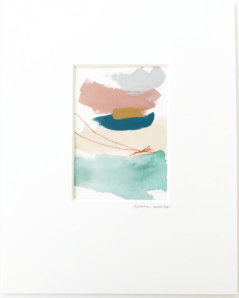 mixed media on watercolor paper in natural white mat