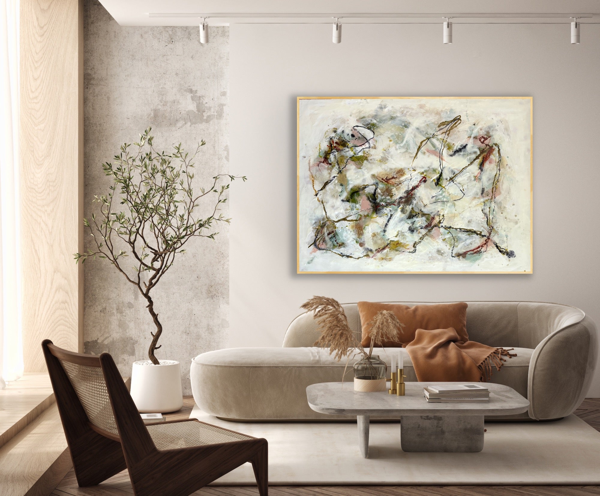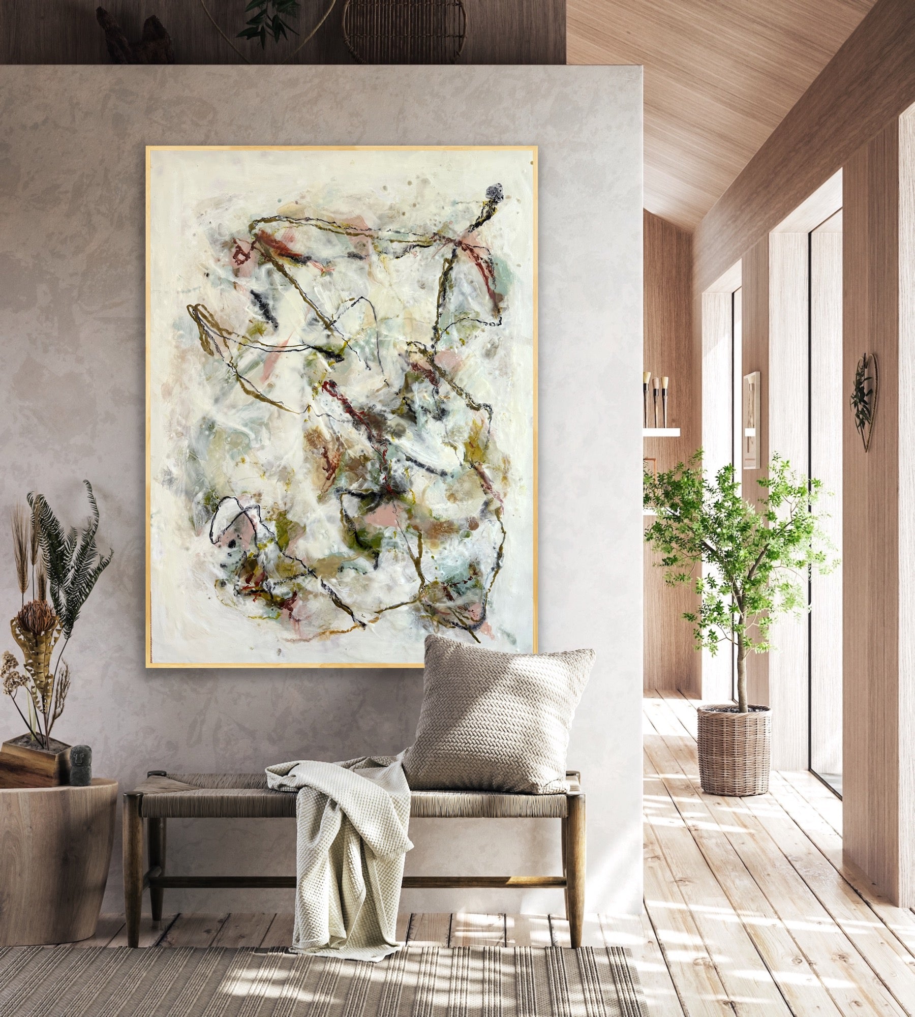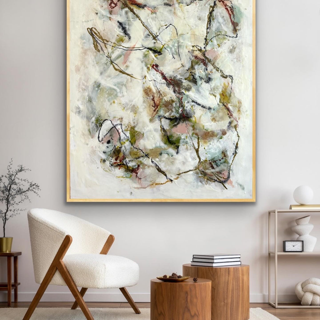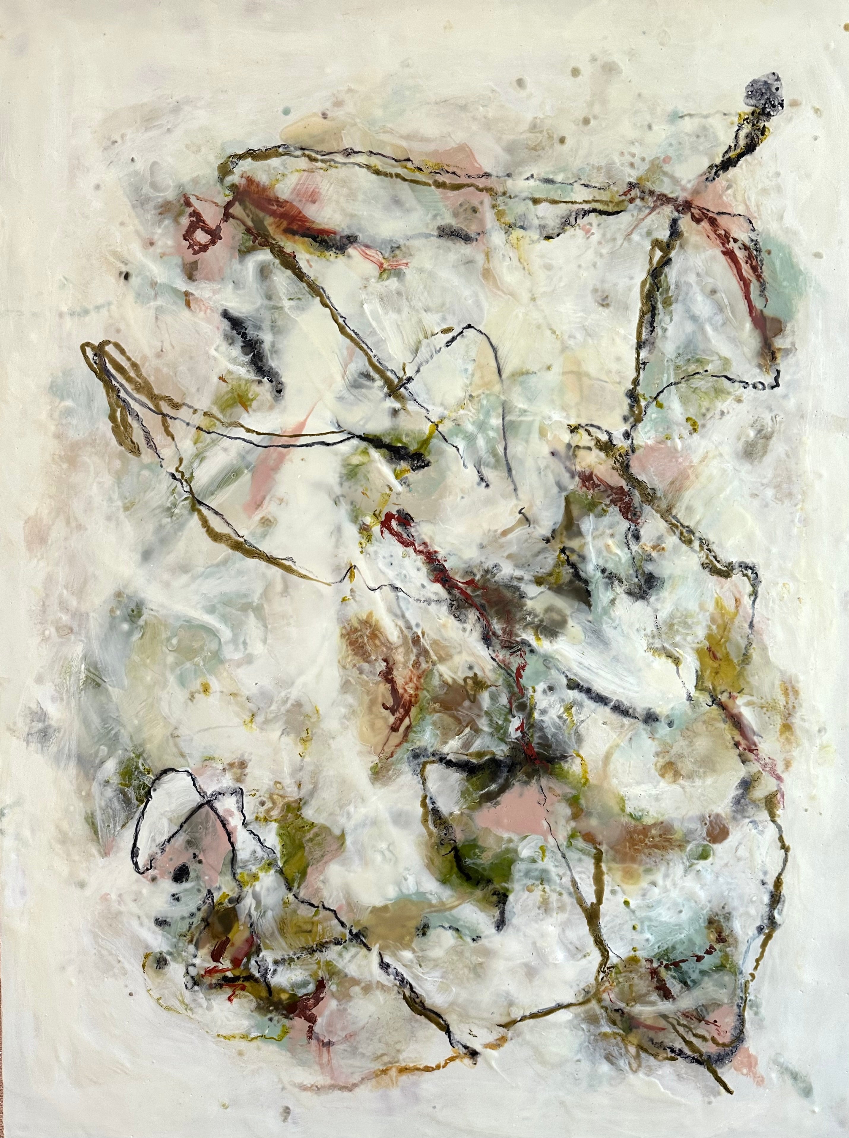 encaustic on wood, gold floating frame