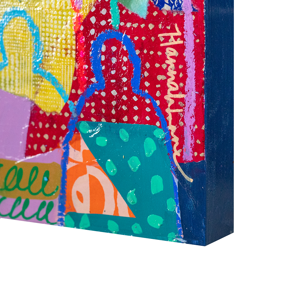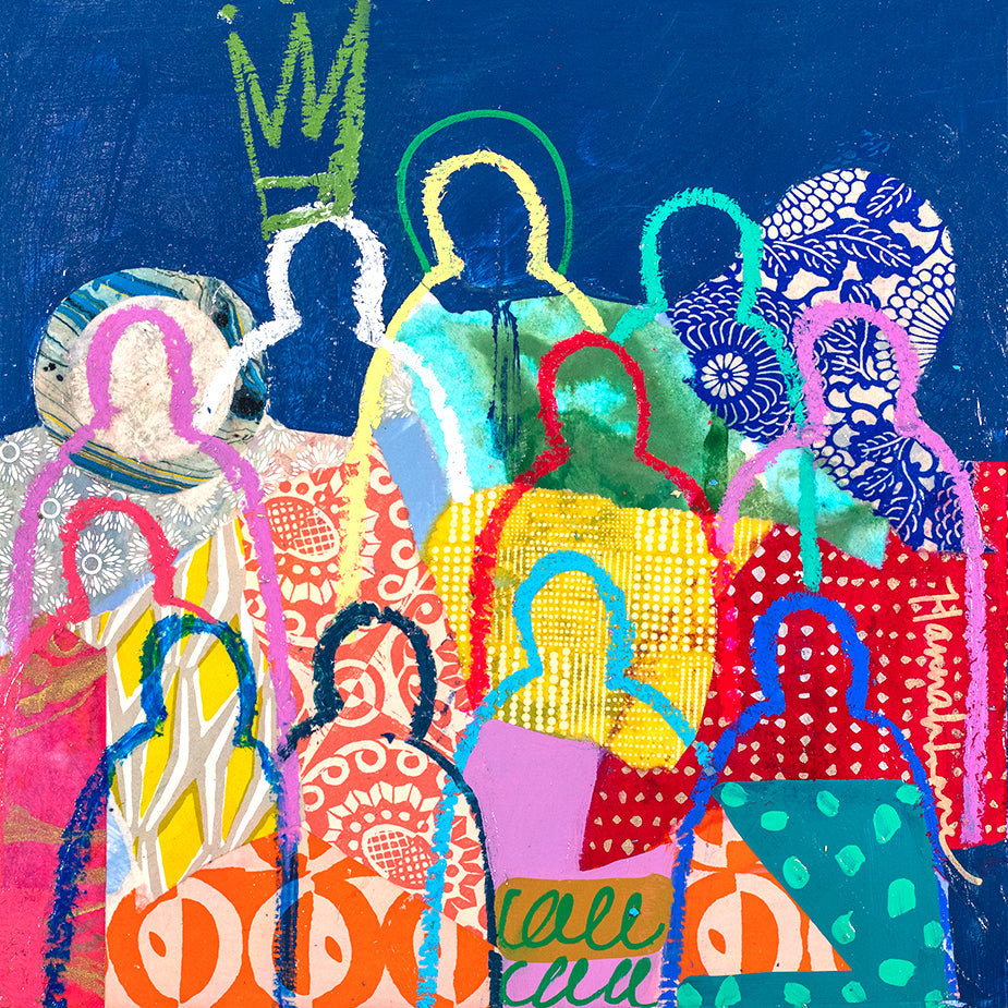 Hannah Lane is a contemporary mixed media artist celebrated for her bold use of color and dynamic, collage-like layering. A Louisiana native and graduate of the Savannah College of Art & Design, Hannah draws deep inspiration from the vibrant landscapes, diverse cultures, and heartfelt sense of family and community found in her southern roots. Her work blends pigmented Japanese papers, expressive line work, and rich washes of acrylic paint to create textured, energetic paintings. Each collection reflects her love for nature, storytelling, and community—an invitation to explore the beauty of her inner imagination. Hannah is represented by some of the top galleries in the Southeast, and her paintings are collected privately and in corporate spaces across the country. She also loves working one-on-one with collectors to create meaningful, custom pieces. After living and painting in Italy and New Orleans, Hannah now calls Nashville home, where she is part of a thriving art community. When she’s not painting in her home studio, you’ll find Hannah hiking with her boys, reading, or cooking up something seasonal and delicious! The crowd series is one of my most iconic collections, inspired by my big, beautiful Louisiana family and the joyful spirit of southern gatherings. I grew up surrounded by cousins, friends, and neighbors—many from families as large and lively as my own—where faith and family were at the heart of everything. Over the past 12 years, this series has evolved with new patterns, papers, and symbols that reflect the changing seasons of life. Each crowd painting is a kind of meditation, a reflection on the deep truth that we’re all connected. Rich with personal symbols and intuitive mark-making, these pieces push the boundaries of mixed media and invite you to see something familiar in a new way. Whether you're drawn to the vibrant energy, the quiet details, or the sense of belonging they evoke, each crowd carries its own unique aura—waiting for the right person to bring it home.