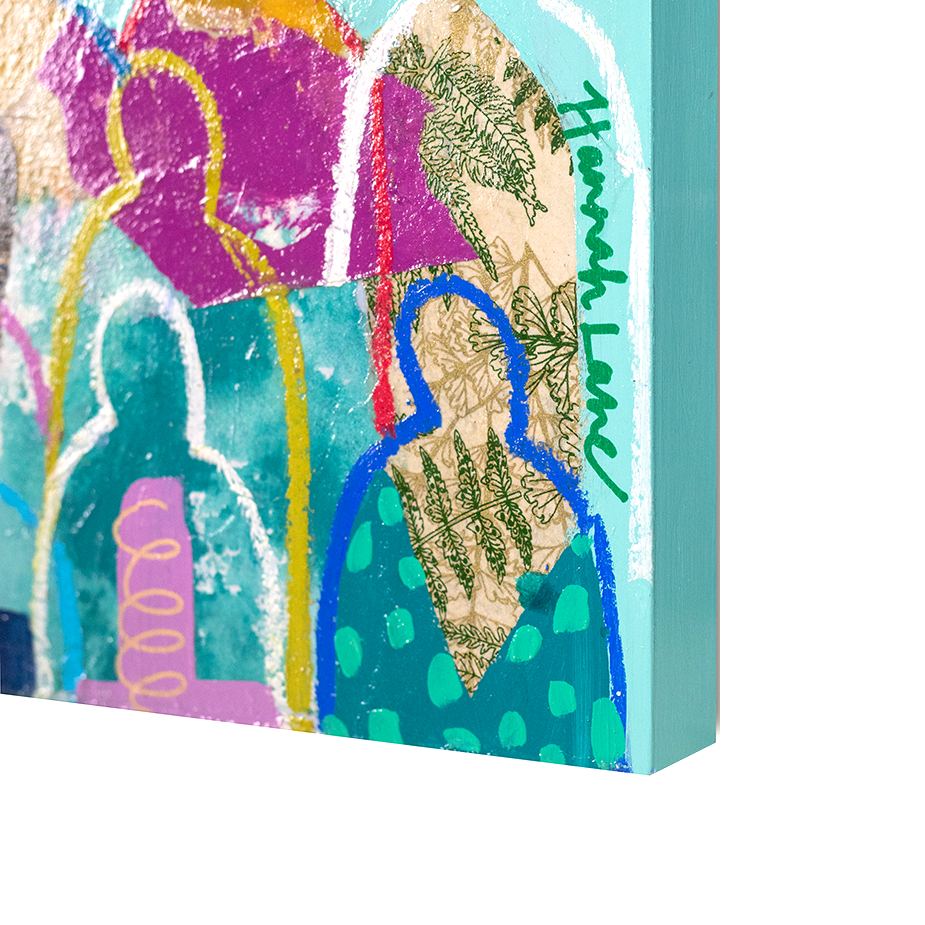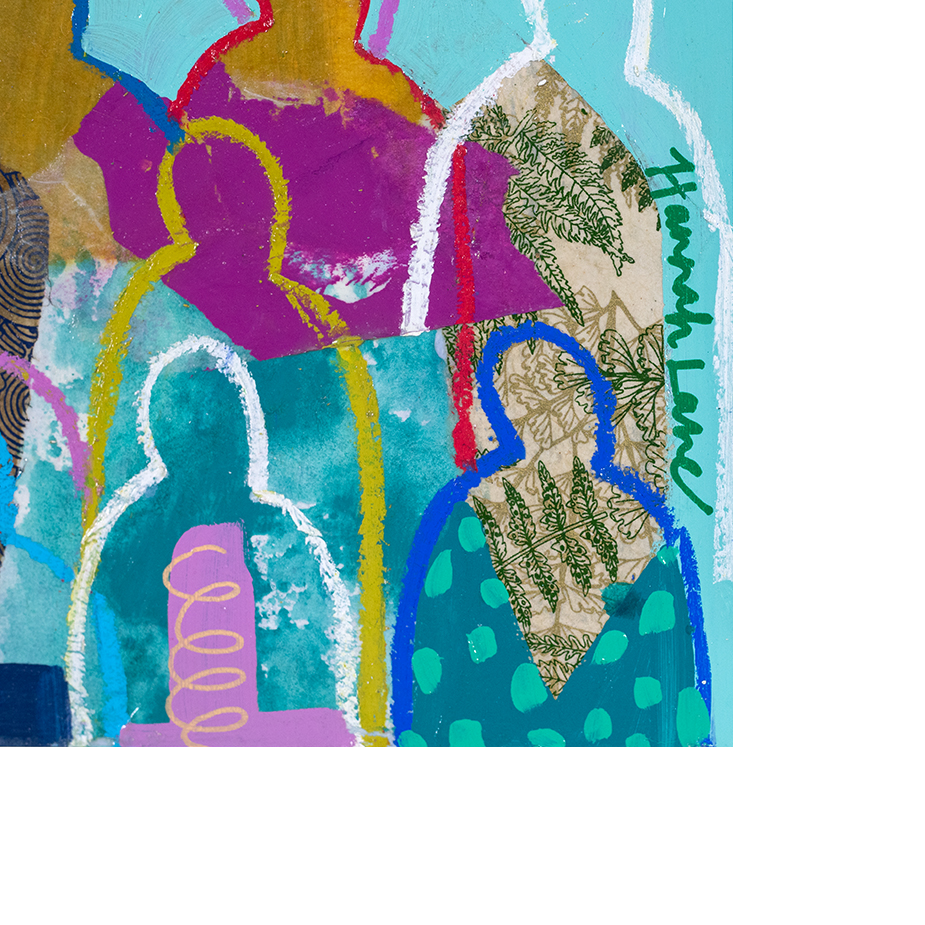 Hannah Lane is a contemporary mixed media artist celebrated for her bold use of color and dynamic, collage-like layering. A Louisiana native and graduate of the Savannah College of Art & Design, Hannah draws deep inspiration from the vibrant landscapes, diverse cultures, and heartfelt sense of family and community found in her southern roots. Her work blends pigmented Japanese papers, expressive line work, and rich washes of acrylic paint to create textured, energetic paintings. Each collection reflects her love for nature, storytelling, and community—an invitation to explore the beauty of her inner imagination. Hannah is represented by some of the top galleries in the Southeast, and her paintings are collected privately and in corporate spaces across the country. She also loves working one-on-one with collectors to create meaningful, custom pieces. After living and painting in Italy and New Orleans, Hannah now calls Nashville home, where she is part of a thriving art community. When she’s not painting in her home studio, you’ll find Hannah hiking with her boys, reading, or cooking up something seasonal and delicious! The crowd series is one of my most iconic collections, inspired by my big, beautiful Louisiana family and the joyful spirit of southern gatherings. I grew up surrounded by cousins, friends, and neighbors—many from families as large and lively as my own—where faith and family were at the heart of everything. Over the past 12 years, this series has evolved with new patterns, papers, and symbols that reflect the changing seasons of life. Each crowd painting is a kind of meditation, a reflection on the deep truth that we’re all connected. Rich with personal symbols and intuitive mark-making, these pieces push the boundaries of mixed media and invite you to see something familiar in a new way. Whether you're drawn to the vibrant energy, the quiet details, or the sense of belonging they evoke, each crowd carries its own unique aura—waiting for the right person to bring it home.
