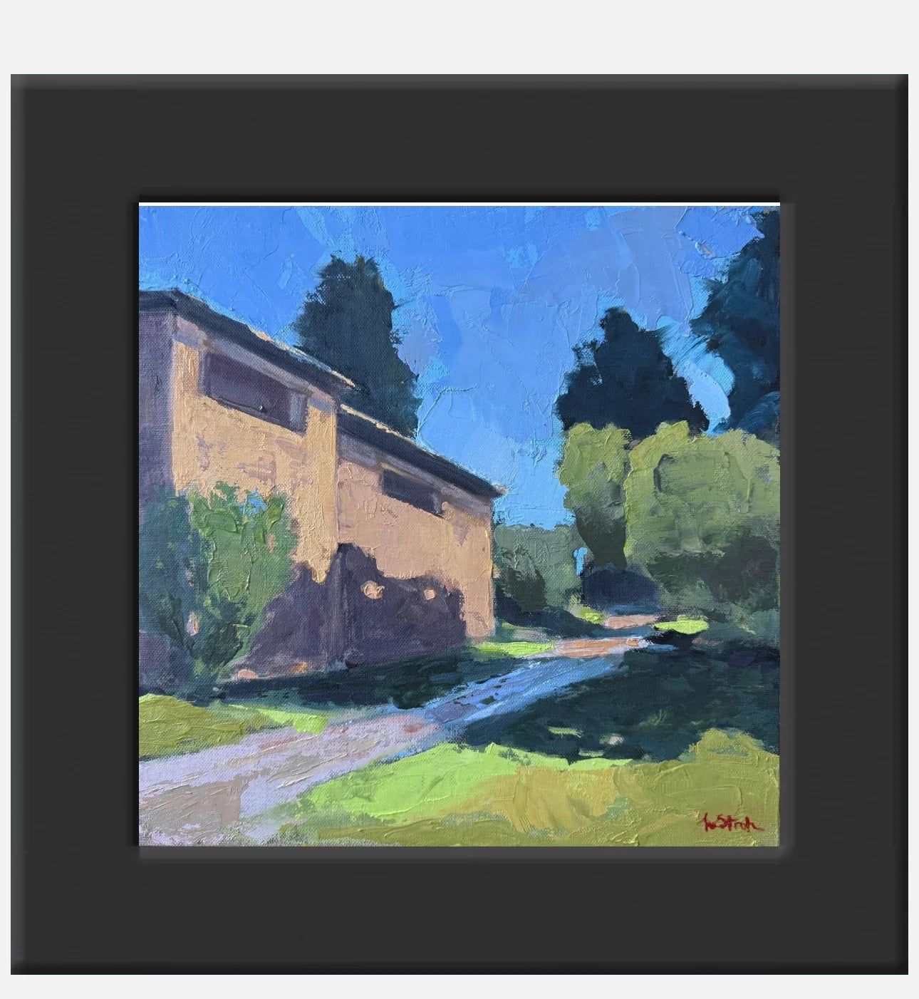 oil on linen panel, in black frame