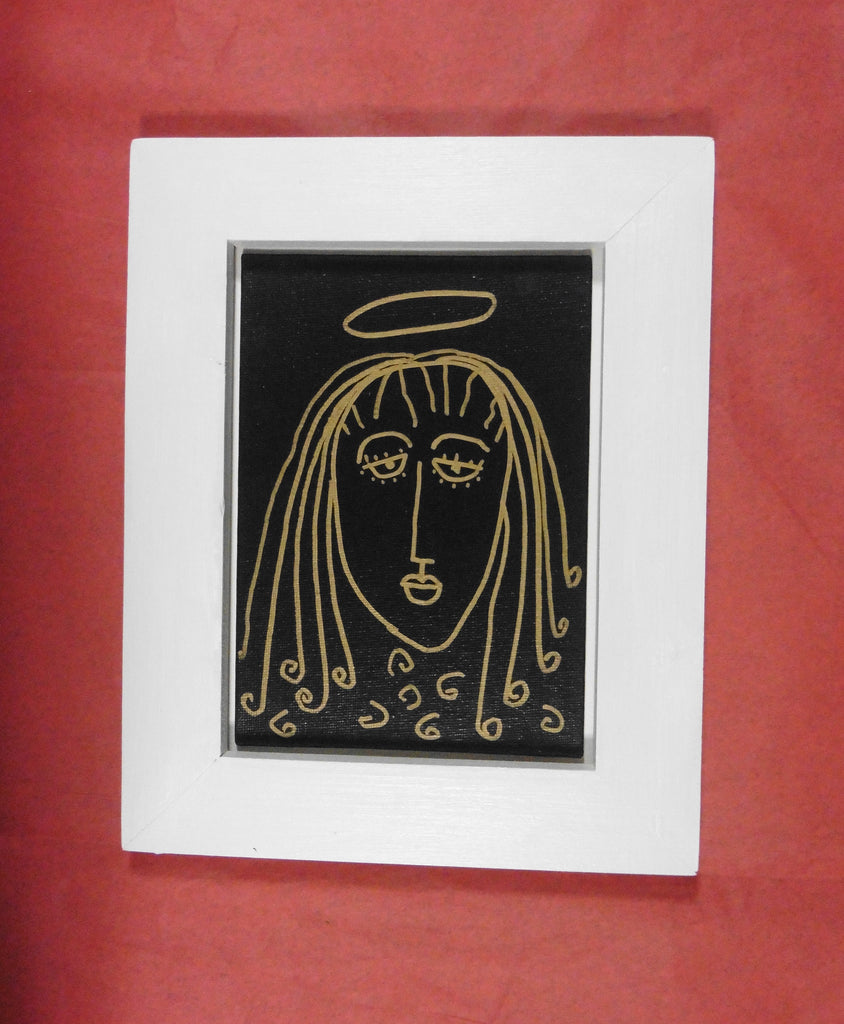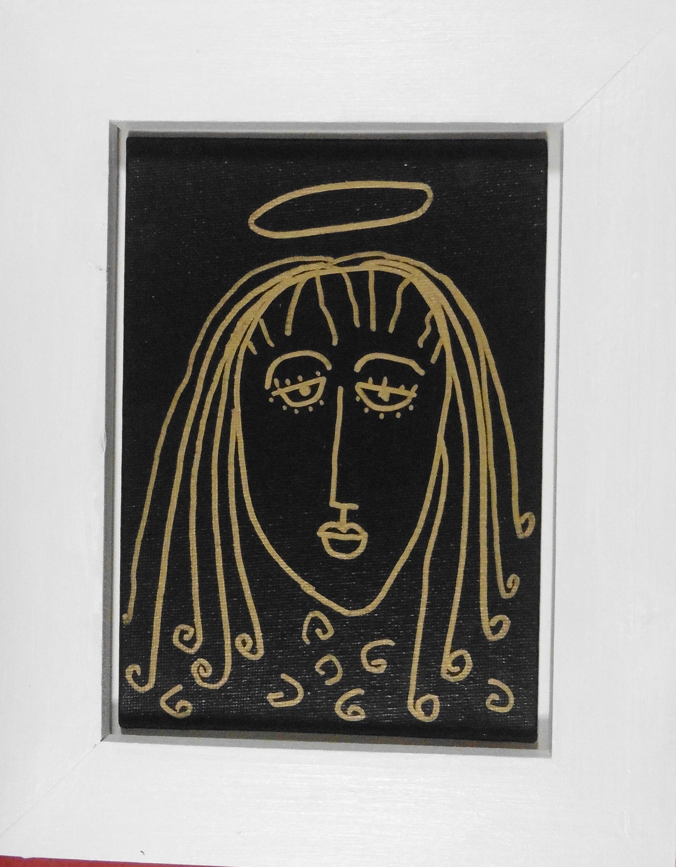 acrylic on canvas panel, in white wood frame