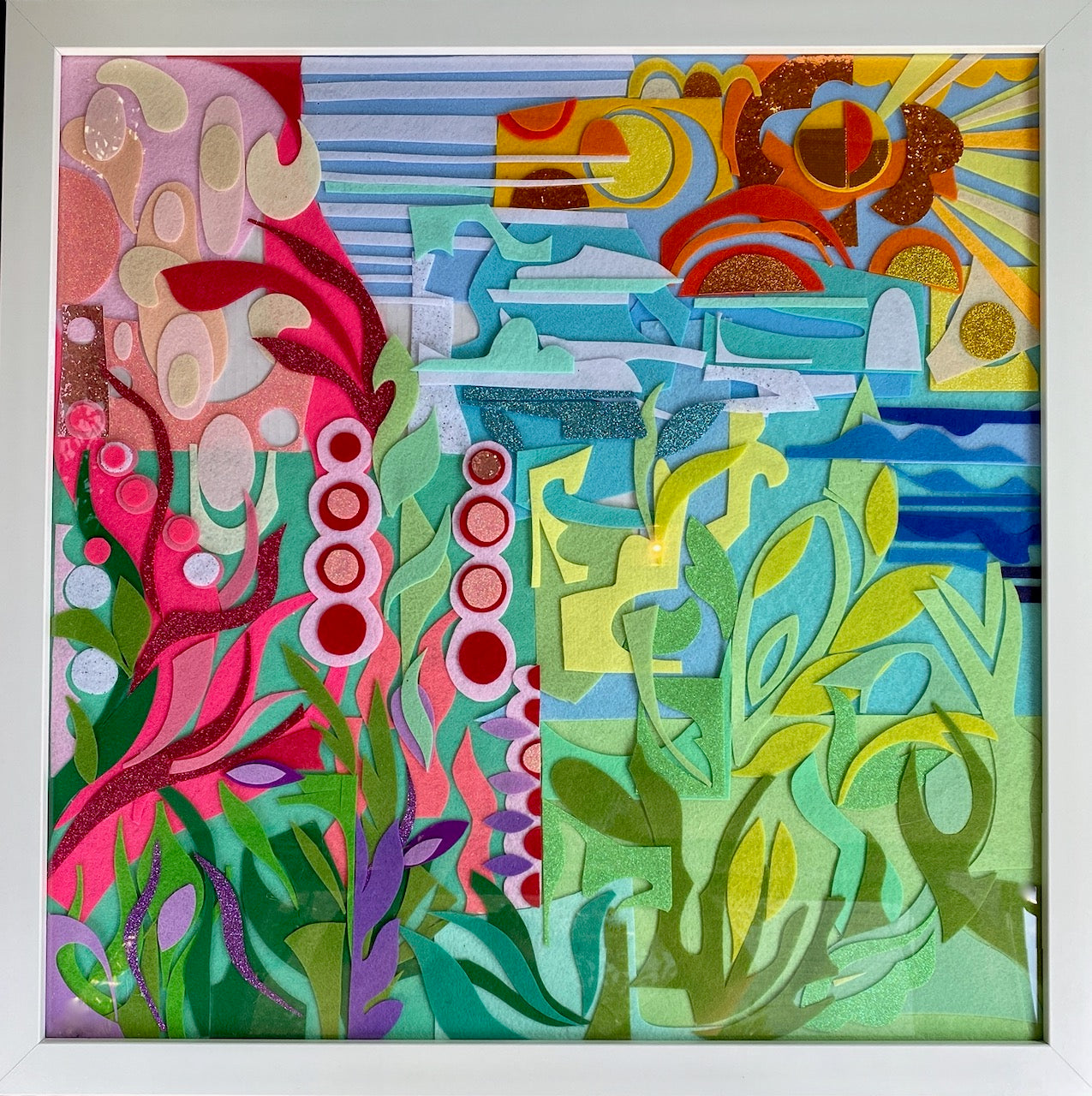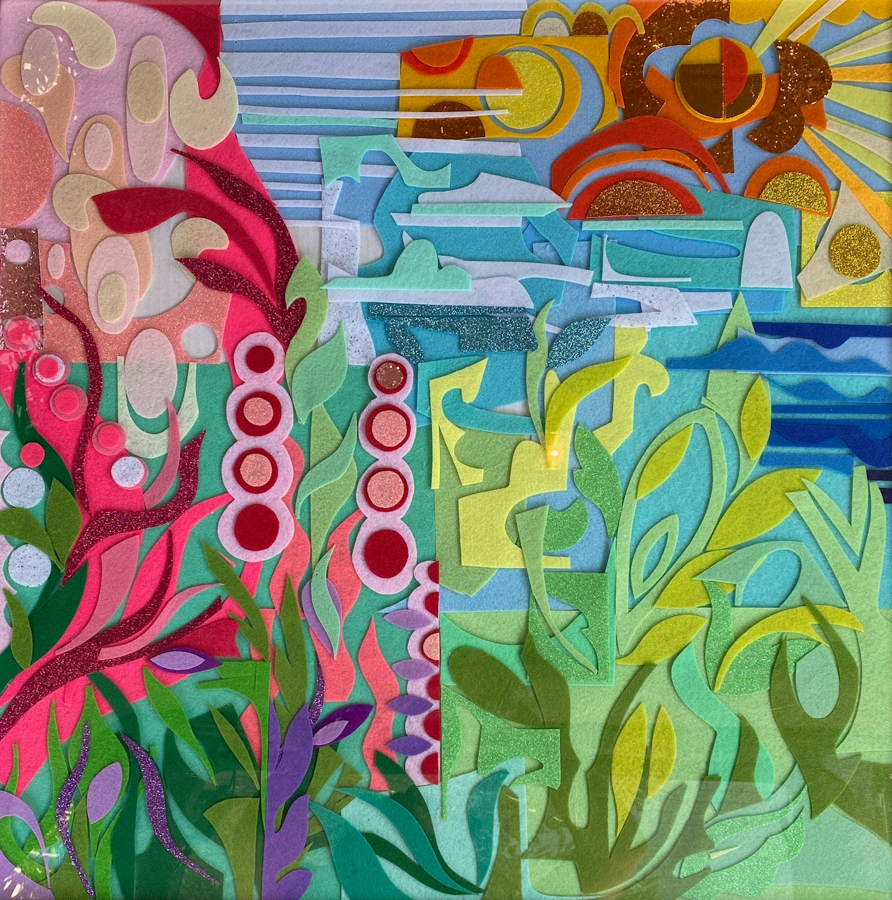 Sam Sidney is originally from New York, and moved to Charleston in 2007. She studied Studio Art at Skidmore College in Saratoga Springs, and earned a Masters in Art Education from NYU. For many years she was an illustrator, but it wasn’t until the quarantine that she started working with felt. She promised herself she would do an art project with her kids each day. One day, she pulled out a small box of felt and made some collages. She made a self portrait out of felt, posted it online, and the rest is history! She free hand cuts felt pieces to create protists of celebrities, pets, food and drinks. When she is not making things out of felt, you can find her at the beach with her 4 kids and 2 dogs.