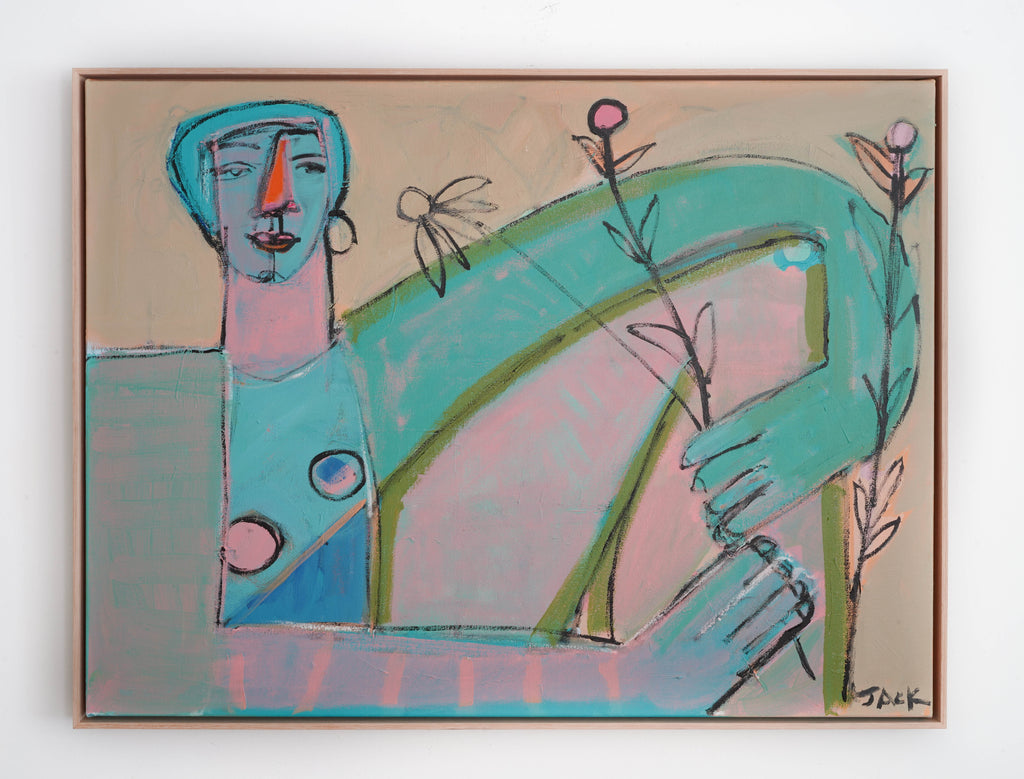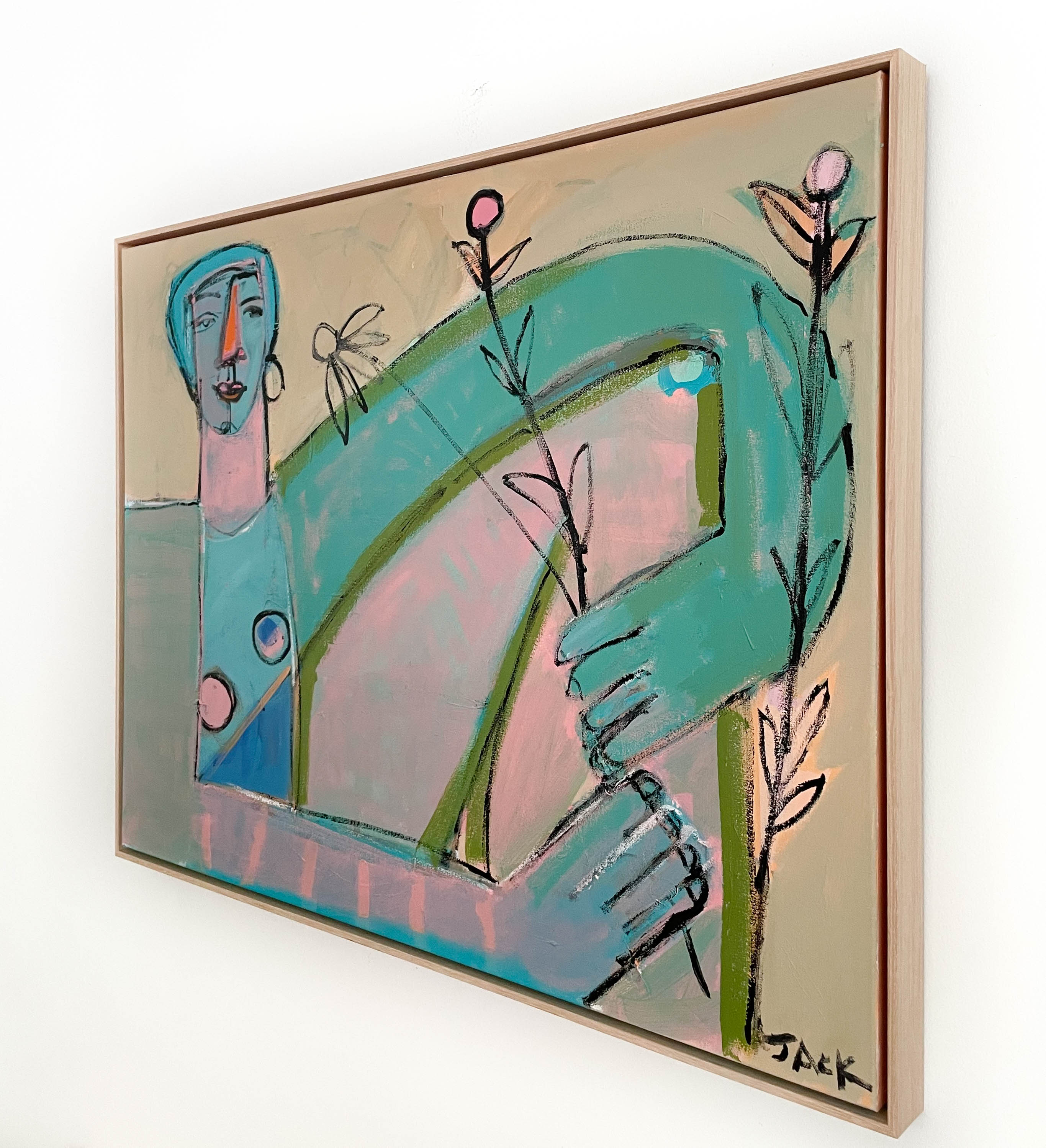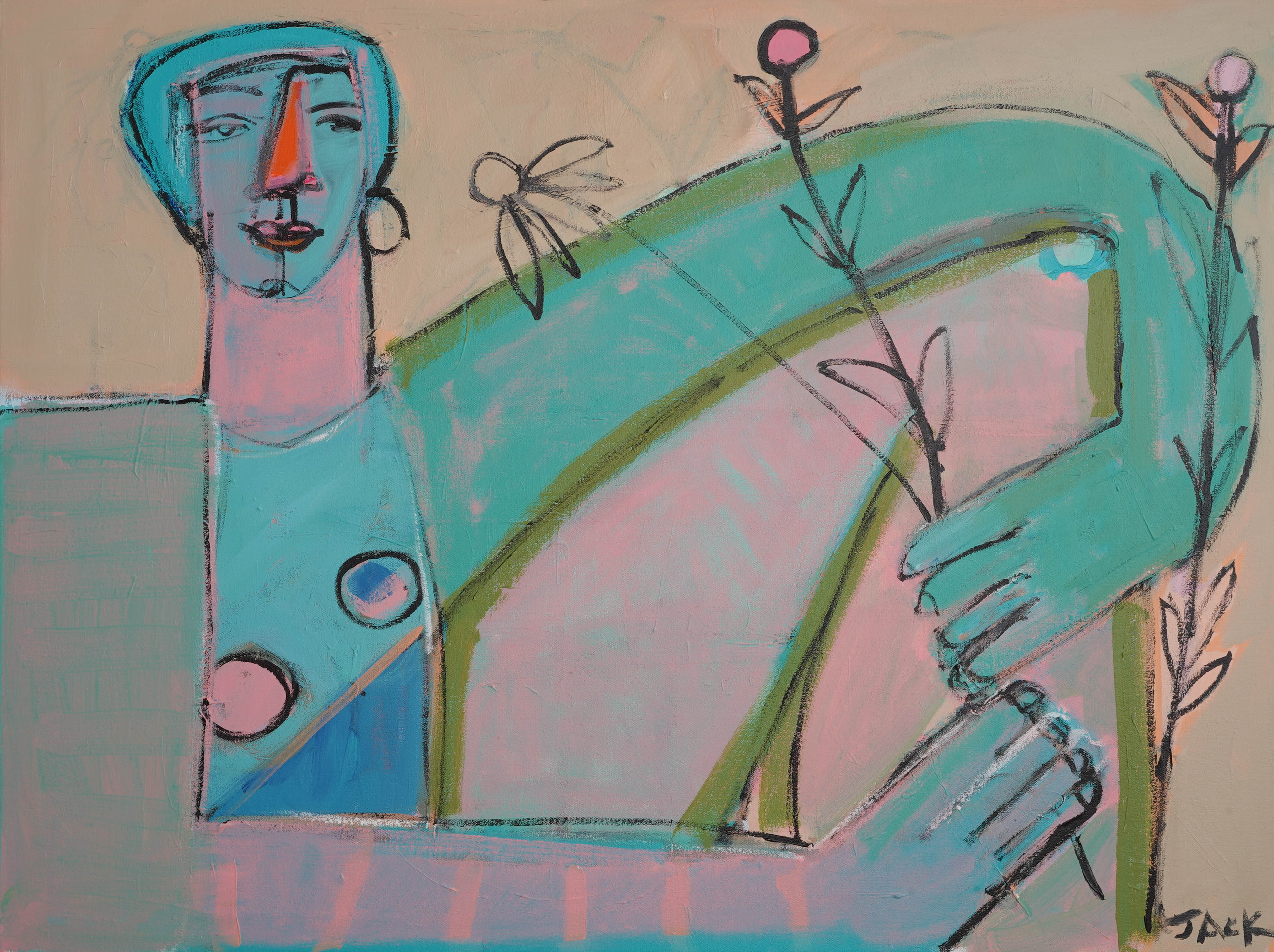 An intuitive artist, Rebecca Jack, paints vibrant figurative works that highlight the beauty of imperfection through visible layering, expressive brush work and mark making. Her figures are boldly unapologetic yet exude a quiet confidence and self-reflective quality. Originally from Knoxville, Tennessee, Jack grew up in an artistic household where she has been painting and drawing all her life. She received her bachelor’s degree at the University of Tennessee in Interior Design. Drawing from her love of design, Jack is inspired by color, pattern, shape and contrast. She is currently living in Atlanta with her husband and son.