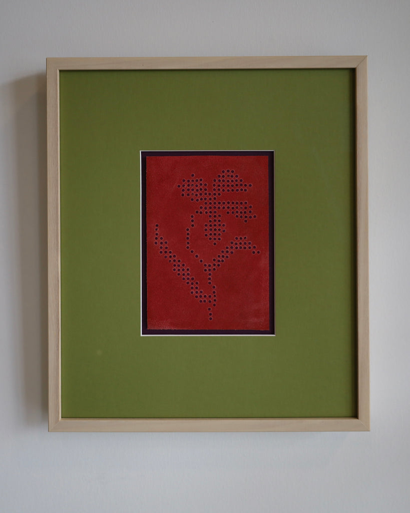 My passion as an artist comes from a life-long desire to create. Growing up with a parent in the military, I was consistently moving around from one place to the next, all the while collecting shapes, places and colors to put in my back pocket and one day use. I was always a painter but started to expand my idea of what could and couldn't be used as art in high school and continued until I finally found my material of choice while in college doing a project made of scrap textiles, including leather and other recycled materials. Years later, in 2018, I started my embarkment as an artist experimenting with different mediums and textiles that slowly evolved into my primary use of leather today. Currently, I live in Memphis, Tennessee with my husband, Alan, and our child, Arrison. When I'm not in the studio, we are often found enjoying local parks, taking nature walks led by our little one. Inspired by the landscapes I grew up seeing and my travels, I soak in my surroundings and then illustrate them in my own way through collages. I am always mesmerized with the way the calming colors and soft layered textures of my pieces can speak to others without using words. A little leather on a wooden panel creates a shared experience between you, the viewer, and me, the artist. This connection brings me such joy and compels me to create the way I see the world: full of color and unsuspecting textures.
