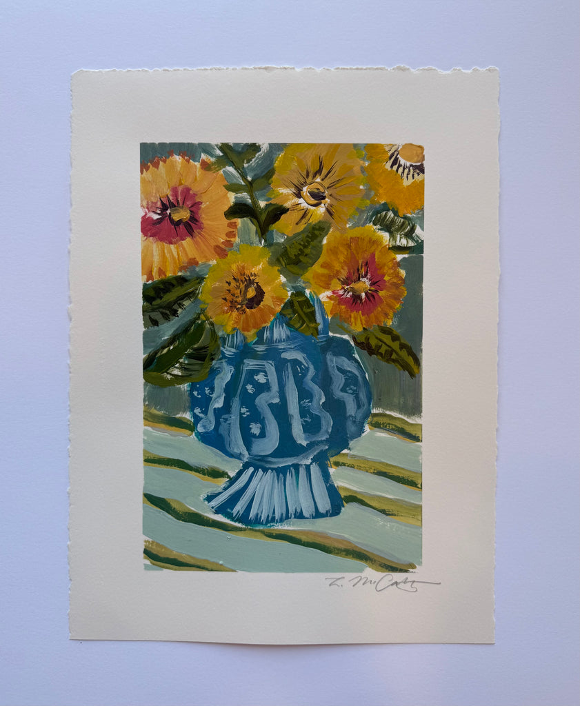Born and raised in Georgia, from a young age, Laura developed a deep love for an array of creative outlets. Design, painting and florals have played a huge part in her life. Laura attended Auburn University and earned a Bachelor’s degree in Graphic Design. Laura’s abstract style is inspired by unique color combinations, gestural marks and texture. No matter the subject, she hopes that her work will be a tangible representation of a special time or memory. Laura lives and works as a full-time freelance designer and artist in Florida. Most days you can find her at home with her husband, Mark, wrangling their children. Her main source of inspiration lives in her three children, Miller (6), Stockton (4), and baby brother Greer (2).