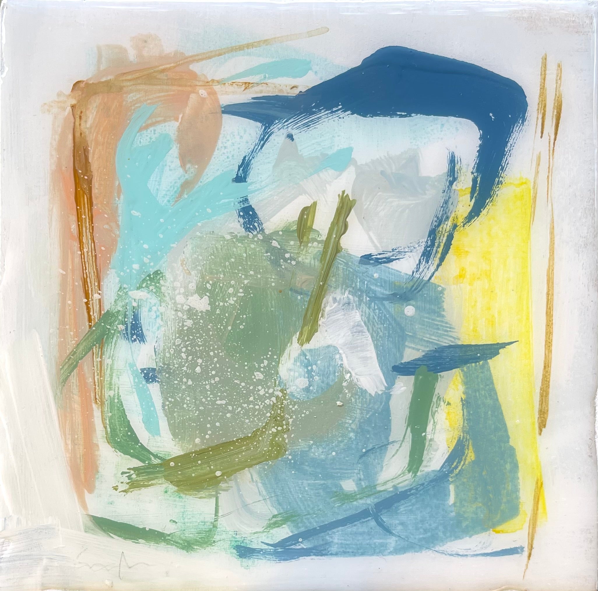 acrylic, oil pastel and resin on cradled wood