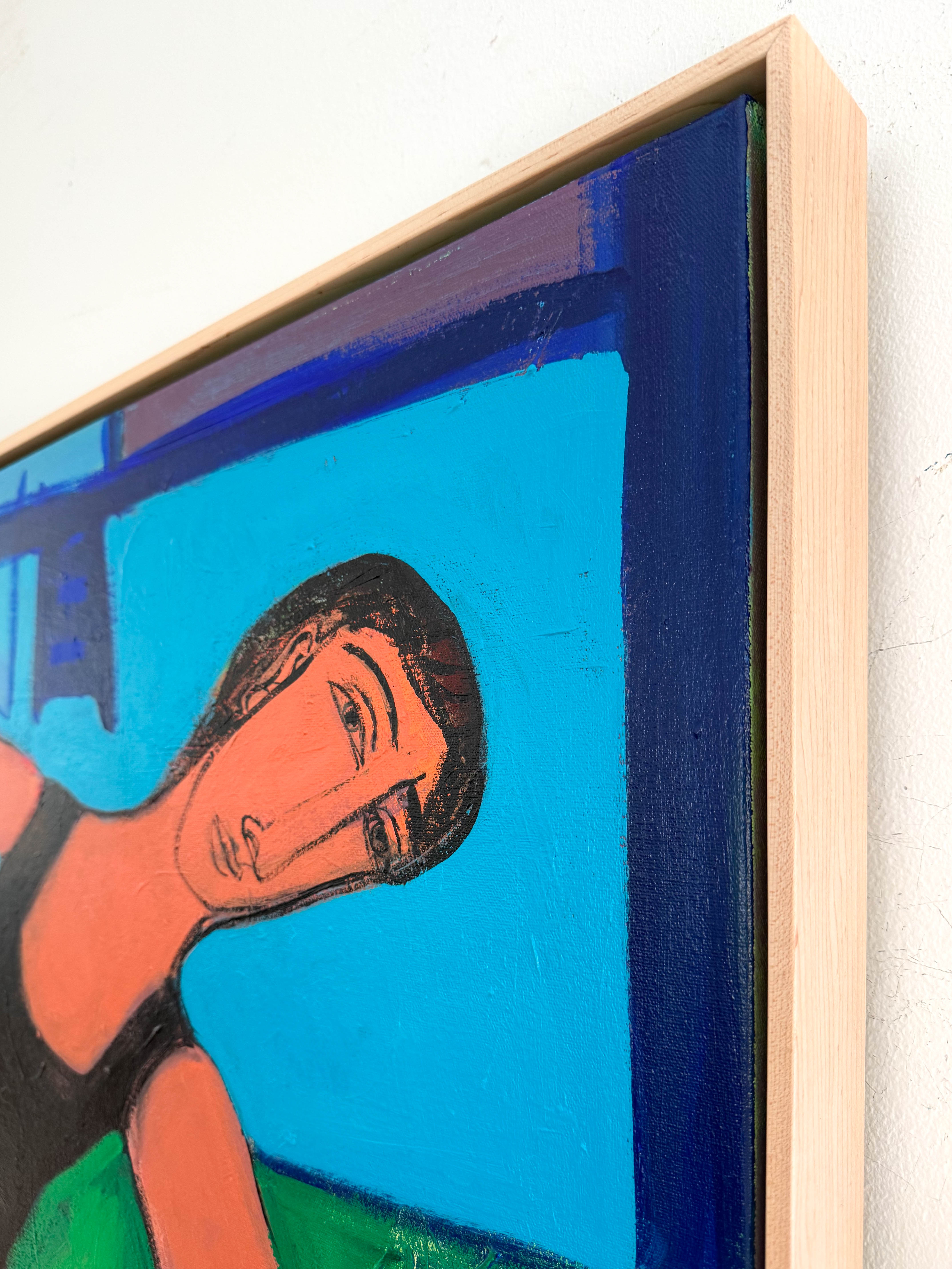 acrylic on gallery wrapped canvas, in maple floater frame