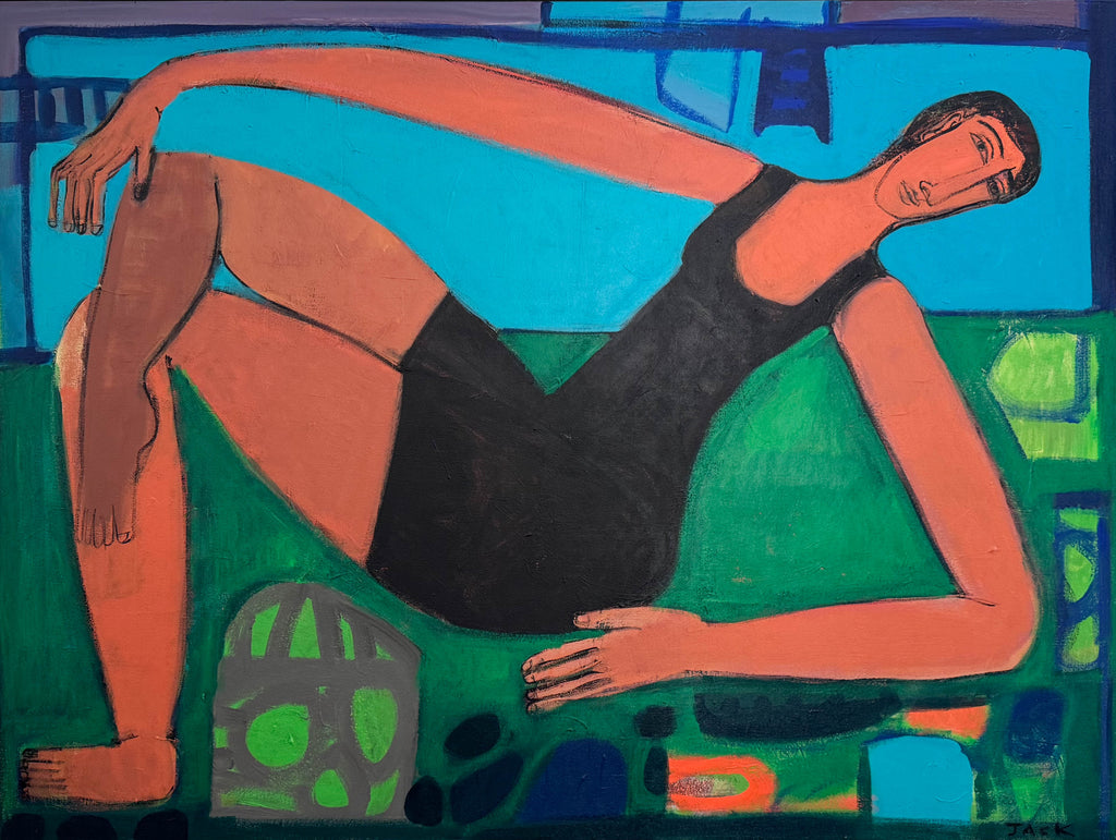 An intuitive artist, Rebecca Jack, paints vibrant figurative works that highlight the beauty of imperfection through visible layering, expressive brush work and mark making. Her figures are boldly unapologetic yet exude a quiet confidence and self-reflective quality. Originally from Knoxville, Tennessee, Jack grew up in an artistic household where she has been painting and drawing all her life. She received her bachelor’s degree at the University of Tennessee in Interior Design. Drawing from her love of design, Jack is inspired by color, pattern, shape and contrast. She is currently living in Atlanta with her husband and son.