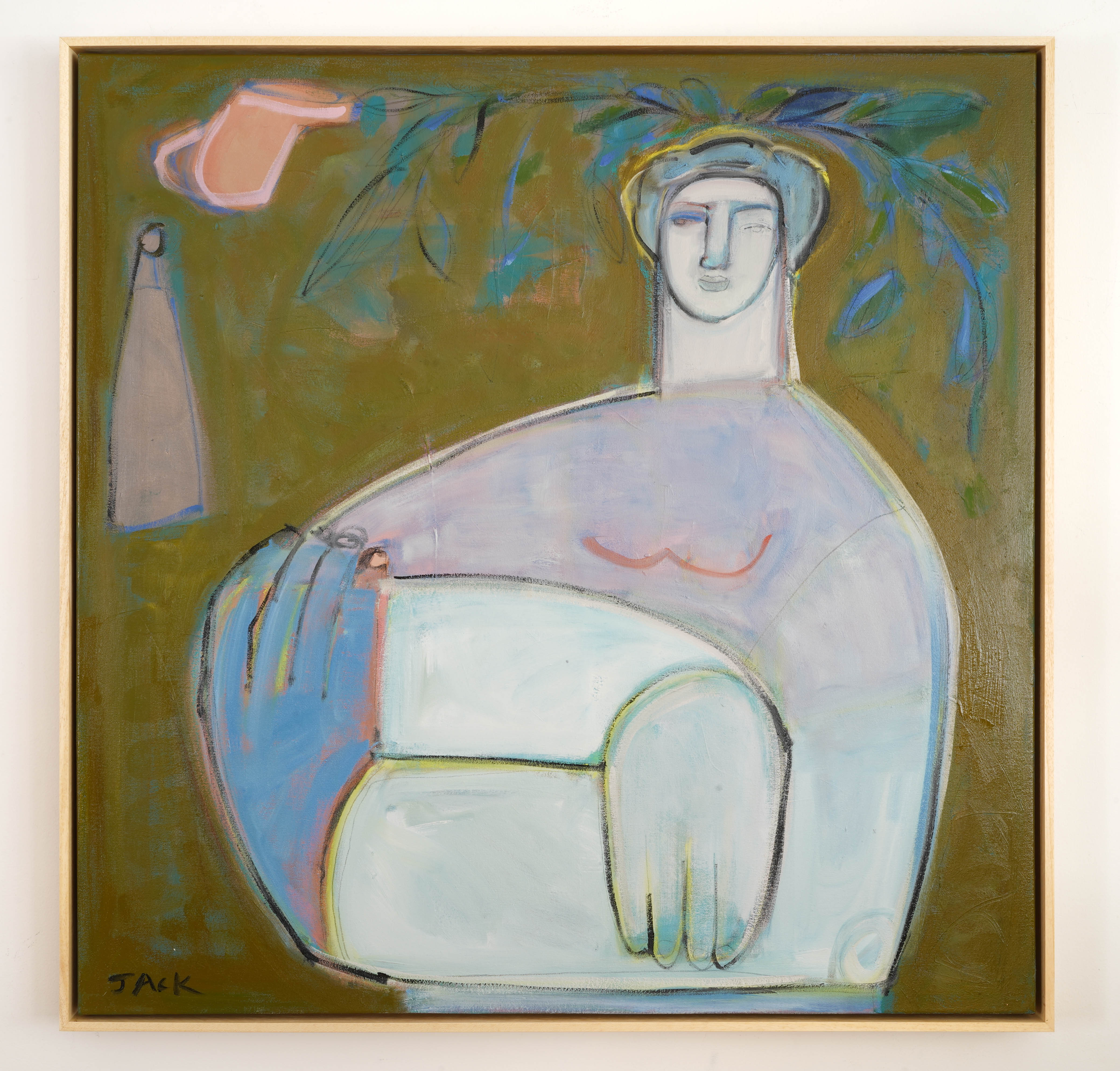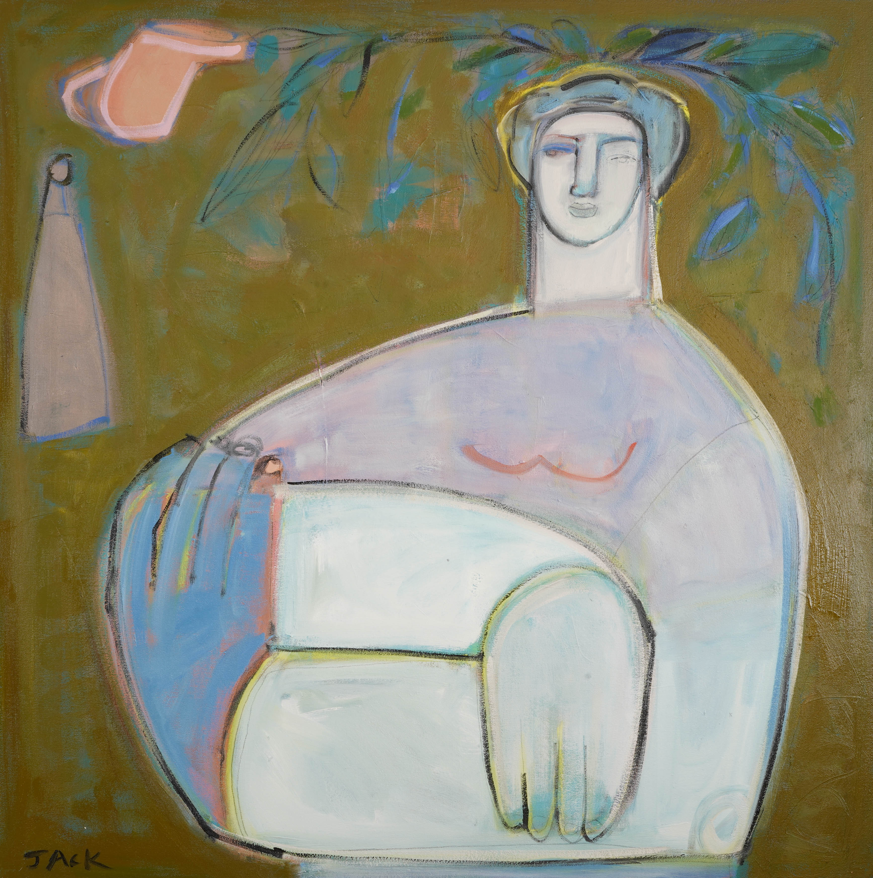 An intuitive artist, Rebecca Jack, paints vibrant figurative works that highlight the beauty of imperfection through visible layering, expressive brush work and mark making. Her figures are boldly unapologetic yet exude a quiet confidence and self-reflective quality. Originally from Knoxville, Tennessee, Jack grew up in an artistic household where she has been painting and drawing all her life. She received her bachelor’s degree at the University of Tennessee in Interior Design. Drawing from her love of design, Jack is inspired by color, pattern, shape and contrast. She is currently living in Atlanta with her husband and son.