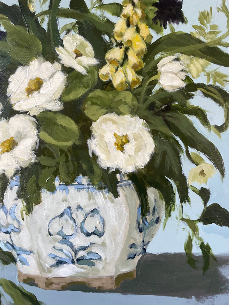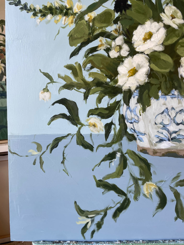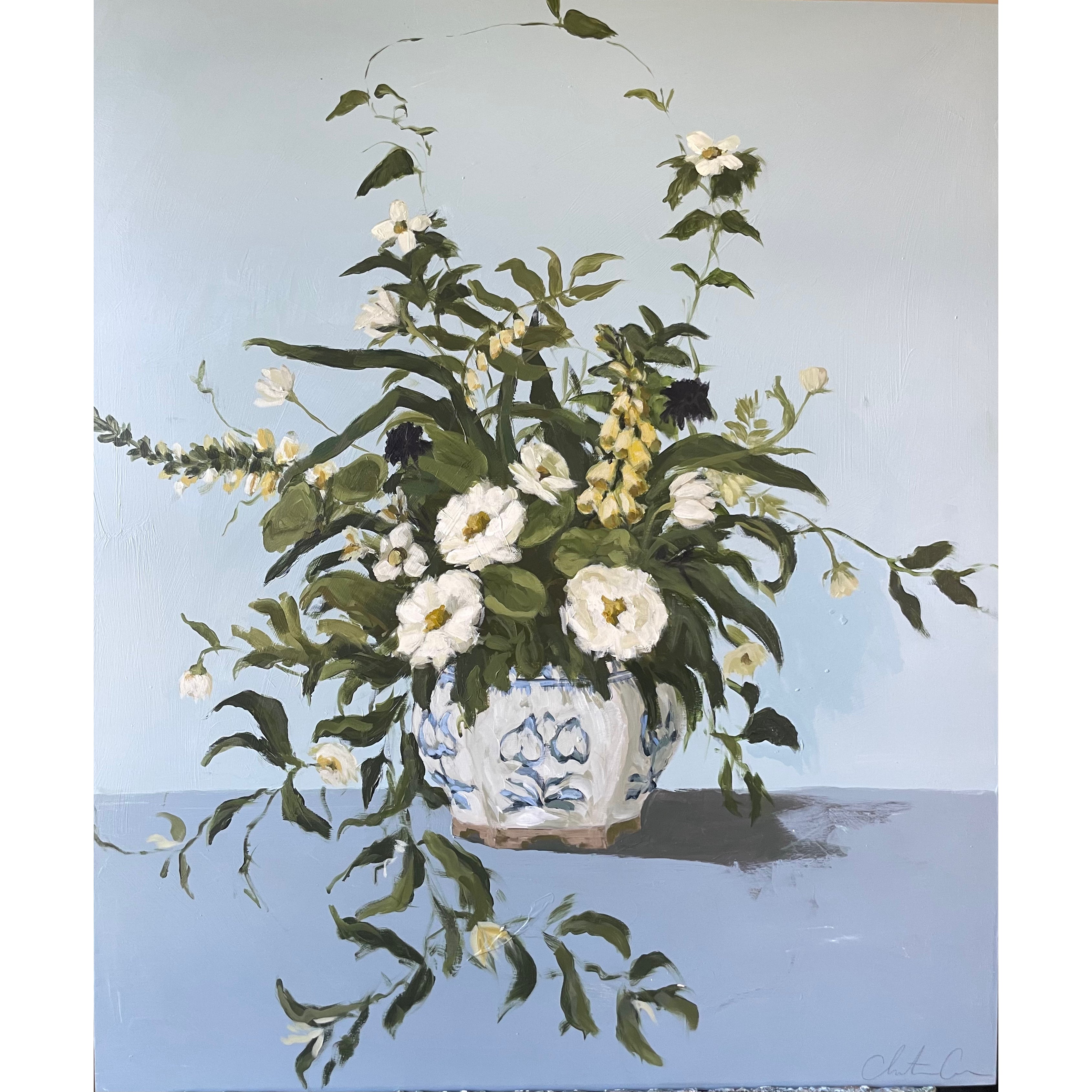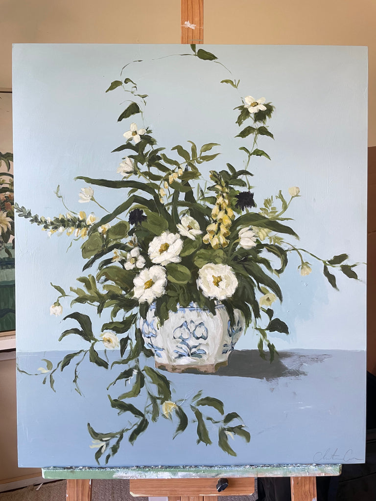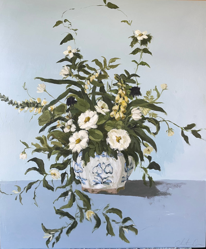 Christine hopes to create artwork that strikes the balance of fun and timeless, in an effortless manner. Composition and color harmony are a distinctive part of her work. Her palettes and subject matter are heavily influenced by her upbringing along the east coast of Florida. She hopes to bring everyday scenes to life through a new perspective and unexpected moments of color. Christine paints entirely from the three primaries (red, yellow + blue) and white. This has helped her gain a strong understanding of color theory.