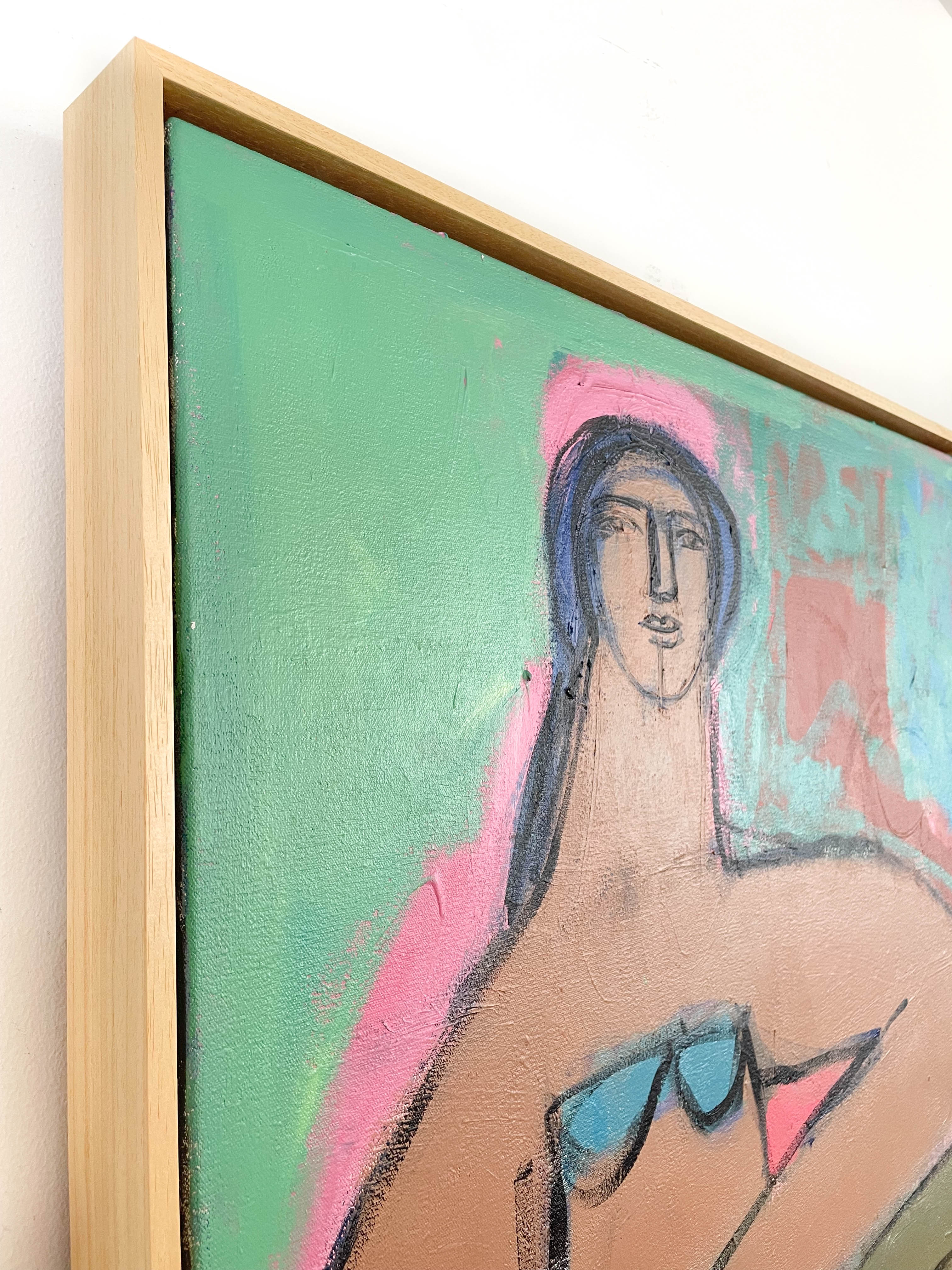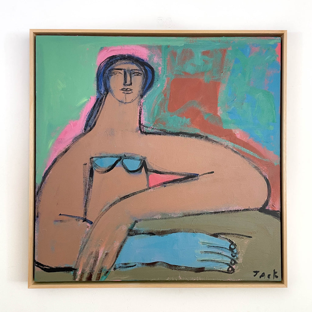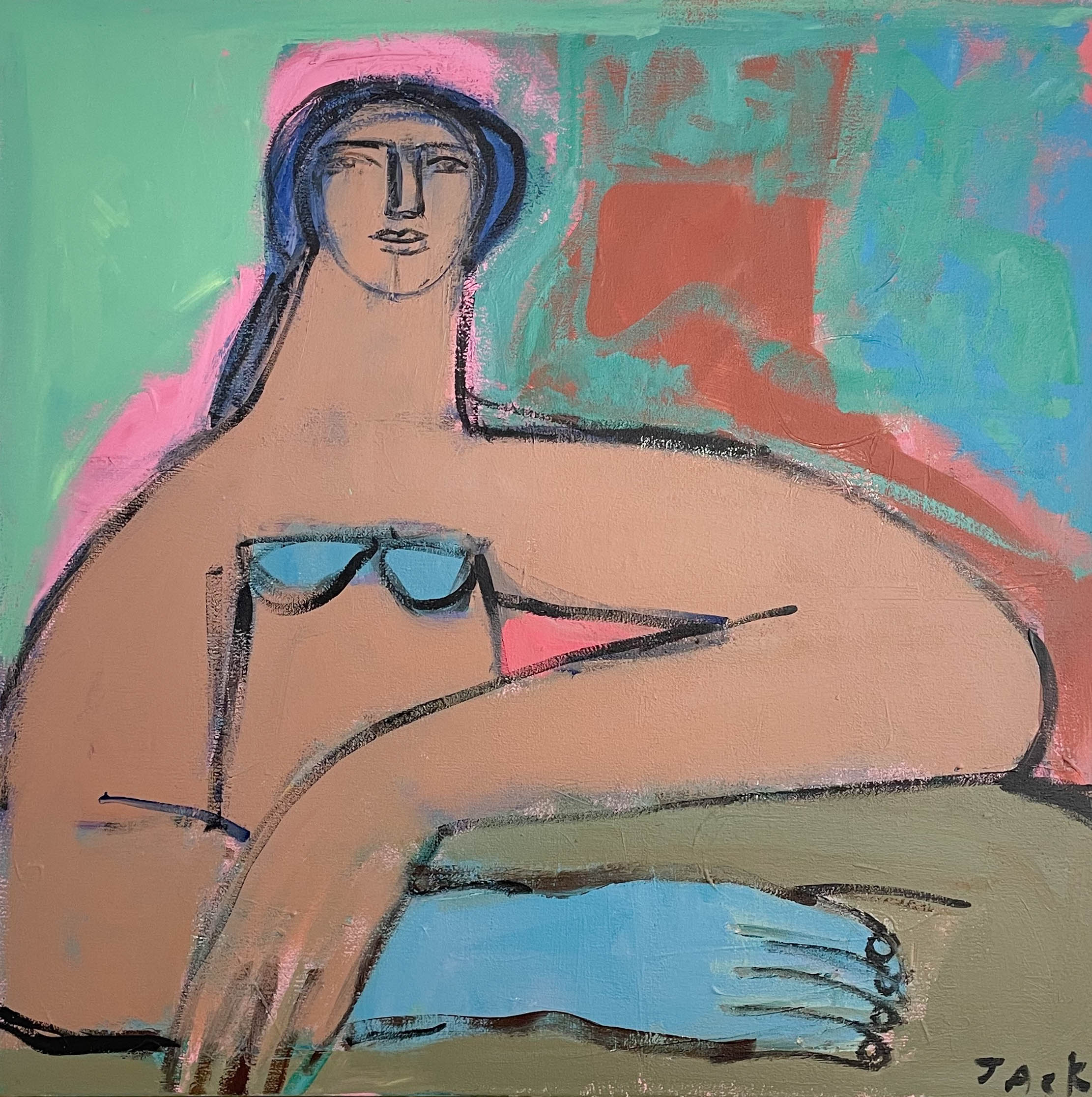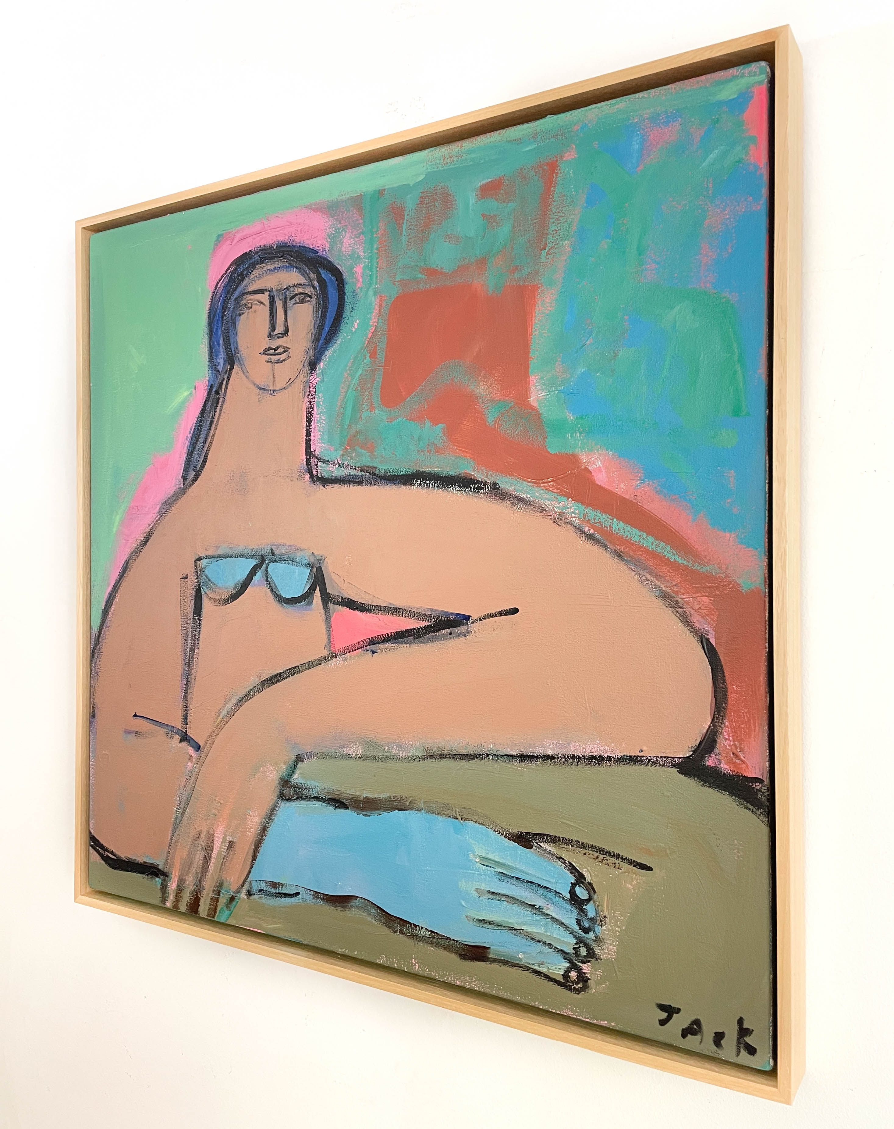 An intuitive artist, Rebecca Jack, paints vibrant figurative works that highlight the beauty of imperfection through visible layering, expressive brush work and mark making. Her figures are boldly unapologetic yet exude a quiet confidence and self-reflective quality. Originally from Knoxville, Tennessee, Jack grew up in an artistic household where she has been painting and drawing all her life. She received her bachelor’s degree at the University of Tennessee in Interior Design. Drawing from her love of design, Jack is inspired by color, pattern, shape and contrast. She is currently living in Atlanta with her husband and son.