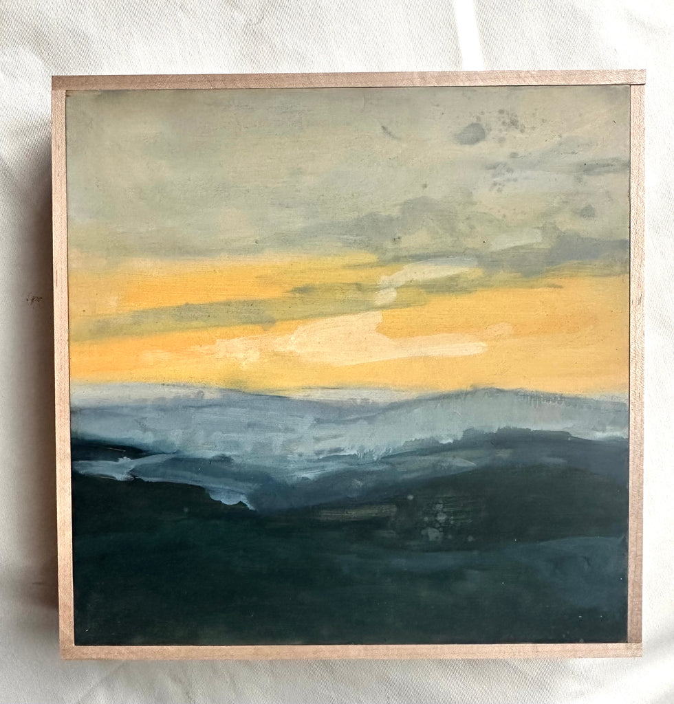 oil and earth pigment on cradled birch panel, in maple strip frame