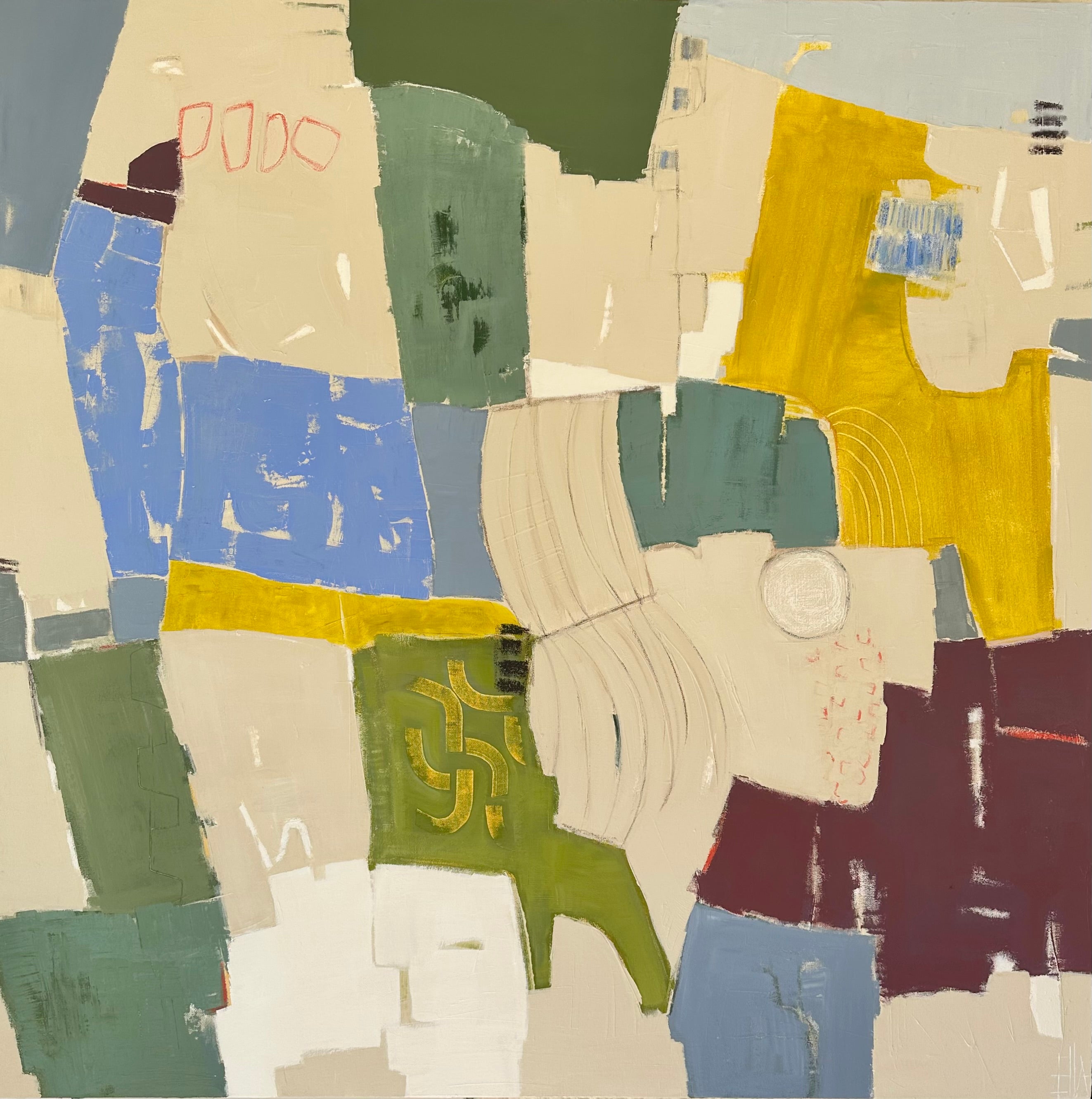 Sarah Ella Cole is a right and left brained self taught artist finding balance on canvas. She is drawn to the fine lines of geometry with the ever present intention to paint them as aloof. She plays with all mediums to create a multifold texture and finish. She finds inspiration from her favorite travel spots, textiles, architecture, and nature. Sarah Ella holds tight to her southern roots and that inspiration will always find its way into each piece.