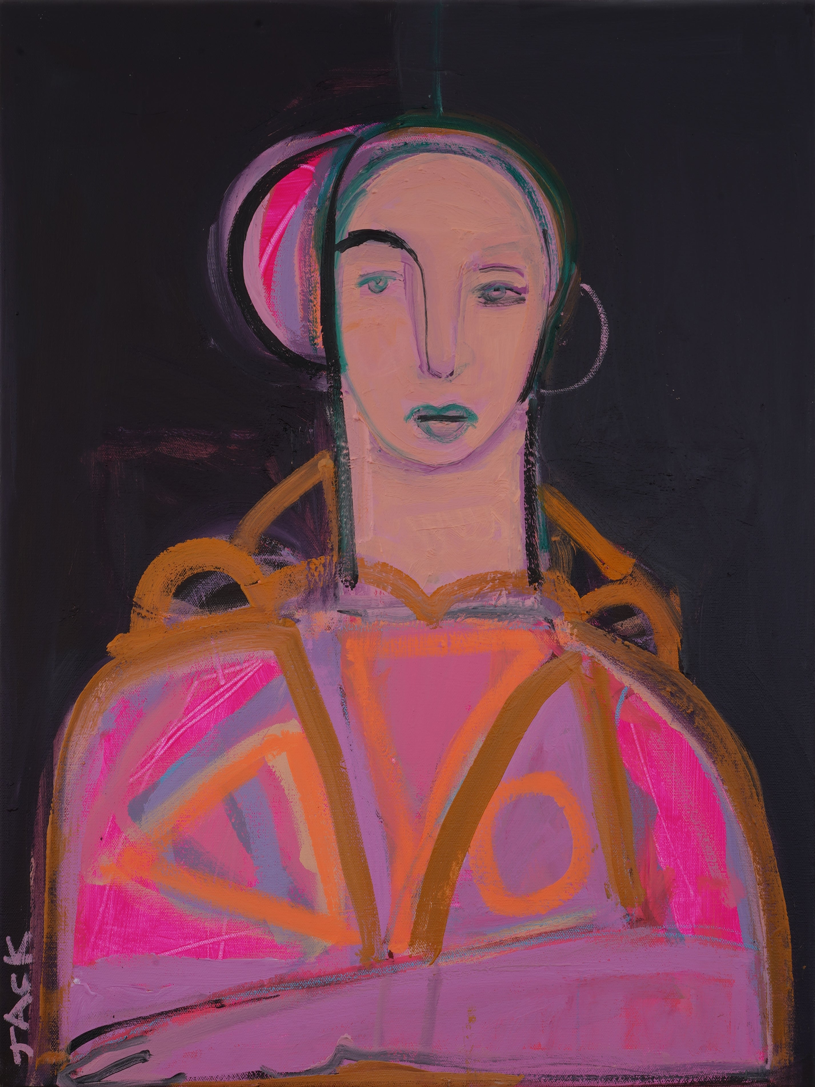 An intuitive artist, Rebecca Jack, paints vibrant figurative works that highlight the beauty of imperfection through visible layering, expressive brush work and mark making. Her figures are boldly unapologetic yet exude a quiet confidence and self-reflective quality. Originally from Knoxville, Tennessee, Jack grew up in an artistic household where she has been painting and drawing all her life. She received her bachelor’s degree at the University of Tennessee in Interior Design. Drawing from her love of design, Jack is inspired by color, pattern, shape and contrast. She is currently living in Atlanta with her husband and son.