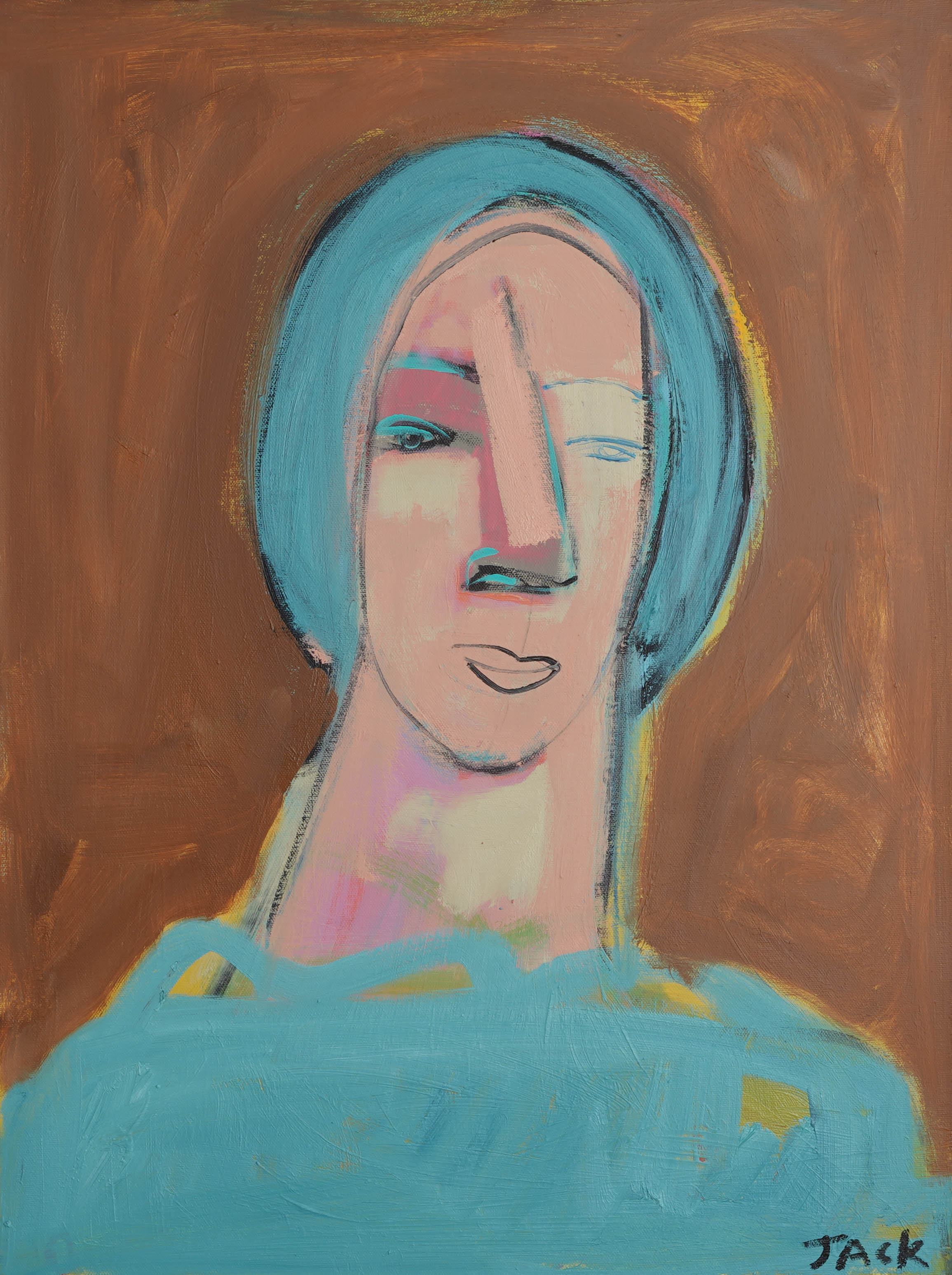 An intuitive artist, Rebecca Jack, paints vibrant figurative works that highlight the beauty of imperfection through visible layering, expressive brush work and mark making. Her figures are boldly unapologetic yet exude a quiet confidence and self-reflective quality. Originally from Knoxville, Tennessee, Jack grew up in an artistic household where she has been painting and drawing all her life. She received her bachelor’s degree at the University of Tennessee in Interior Design. Drawing from her love of design, Jack is inspired by color, pattern, shape and contrast. She is currently living in Atlanta with her husband and son.