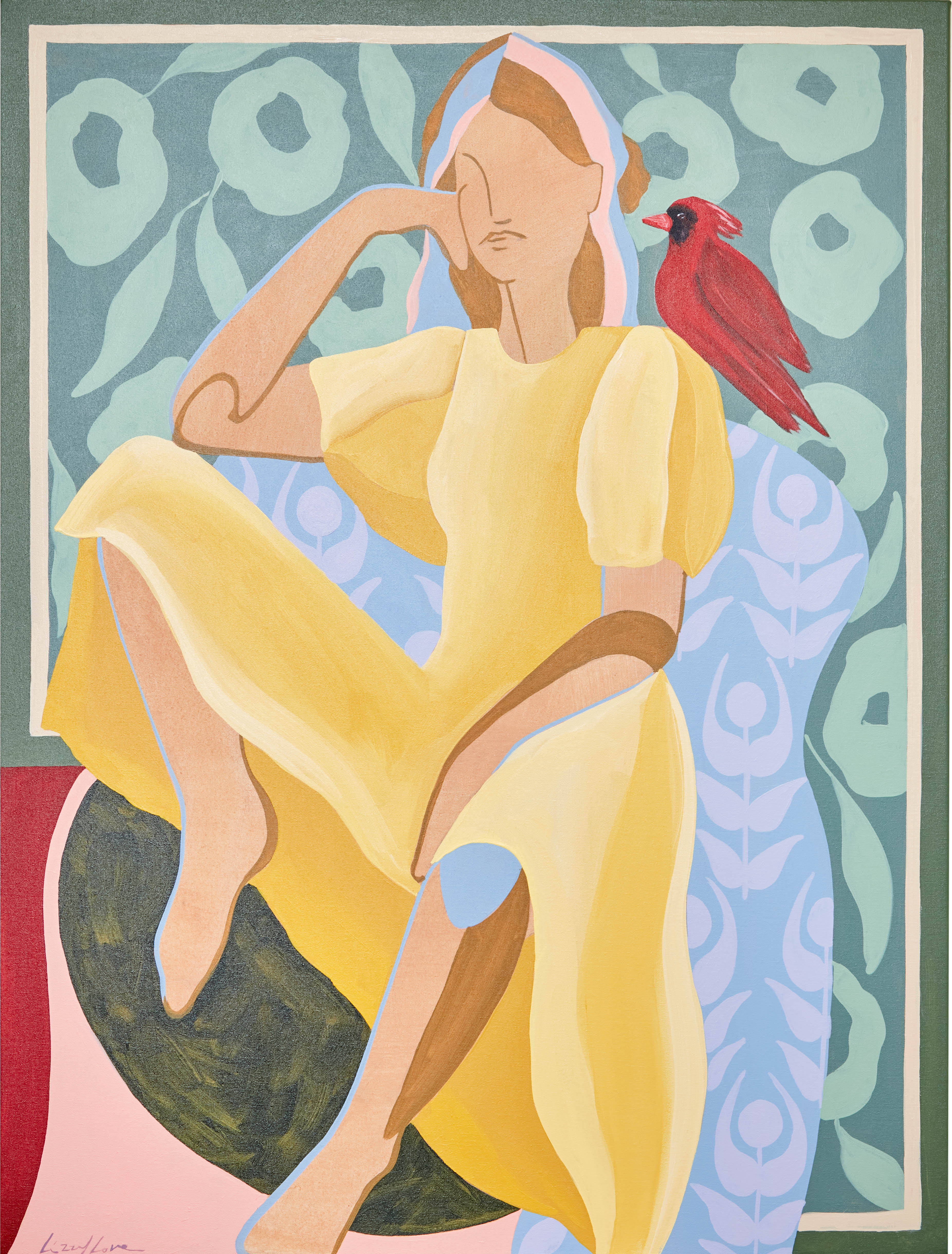 My name is Lizzy Love and I'm an artist in Nashville, TN. I create figurative works on canvas with acrylic paint and papers with watercolor and gouache. This body of work has been a rebirth for me creatively. While I've been painting full time for the last 5 years, I feel like I've really come into myself creatively with my figurative paintings. Born out of a time of uncertainty and lots of questioning, I was pushed to dig deep and get back to basics. I decided to switch gears from painting the landscapes, for which I had been primarily making for years. As an effort to get my creative spark back, I started sketching figures from magazines, a subject I hadn’t explored in a long time. Over many months they slowly evolved into what they have become; starting from detailed and realistic, to more abstract and modernist. I am a big believer that the environment of your home shapes your attitude, and for that reason I love interior design. That love is what led me to start incorporating furniture / interior surroundings / and patterns into the pieces. I pull apart and put back together the lines and shapes of many of my favorite interiors, and place them amongst the figures in a dynamic way. These ladies embody many things - community, respect, femininity, reverence. They are a way to draw attention to what being a woman entails. Many times it means being fierce and strong. Many times it means leaning on and drawing your strength from friends that are like family. While creating each piece, I draw upon the love and reverence I have for all the women in my life; the women who have shaped me, lifted me up when I needed it, laughed with me, and inspired me.