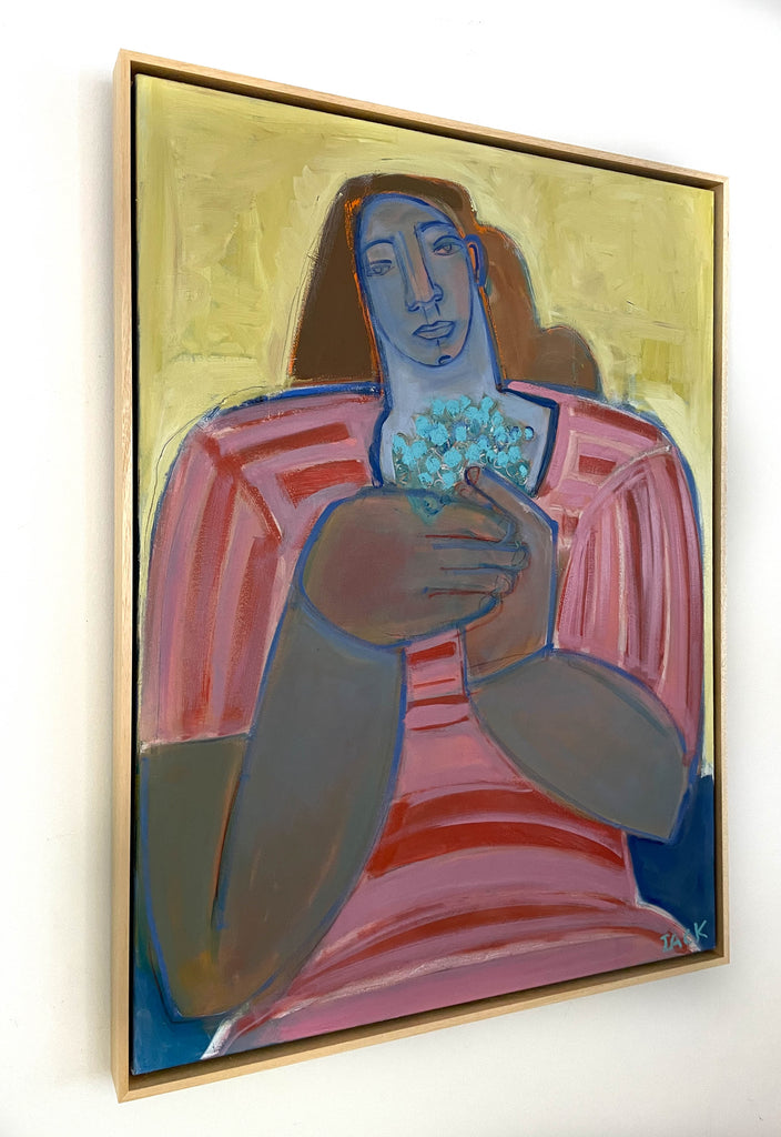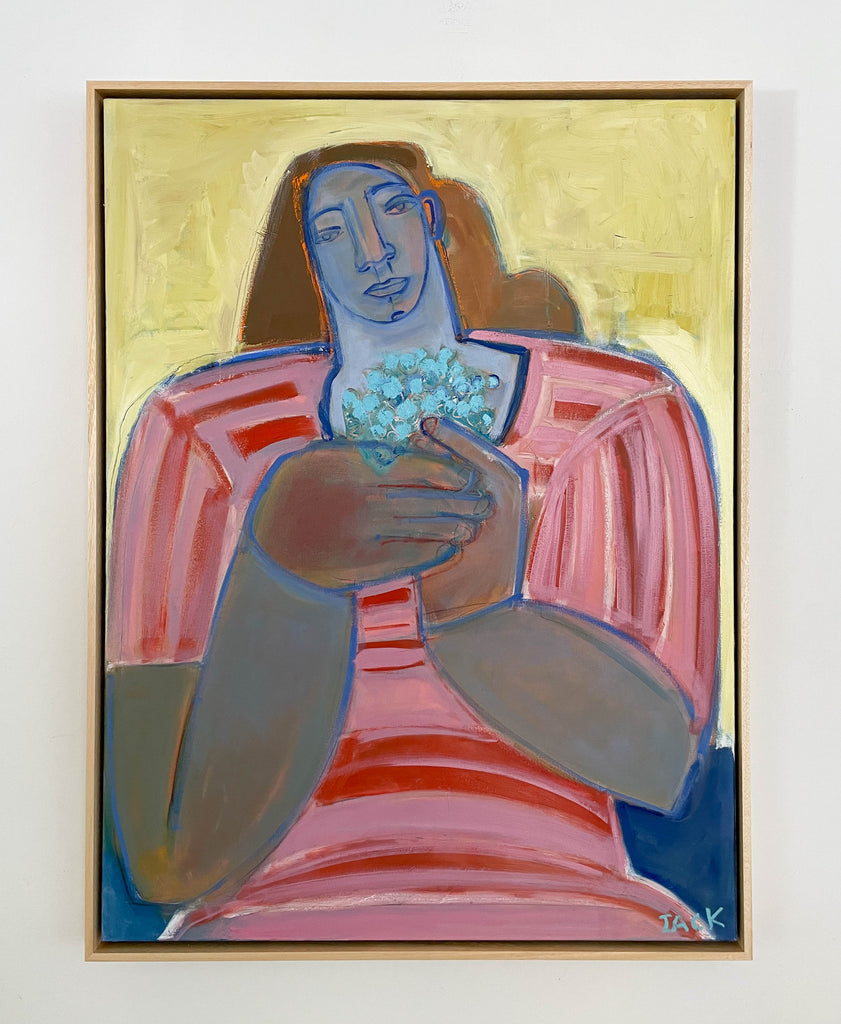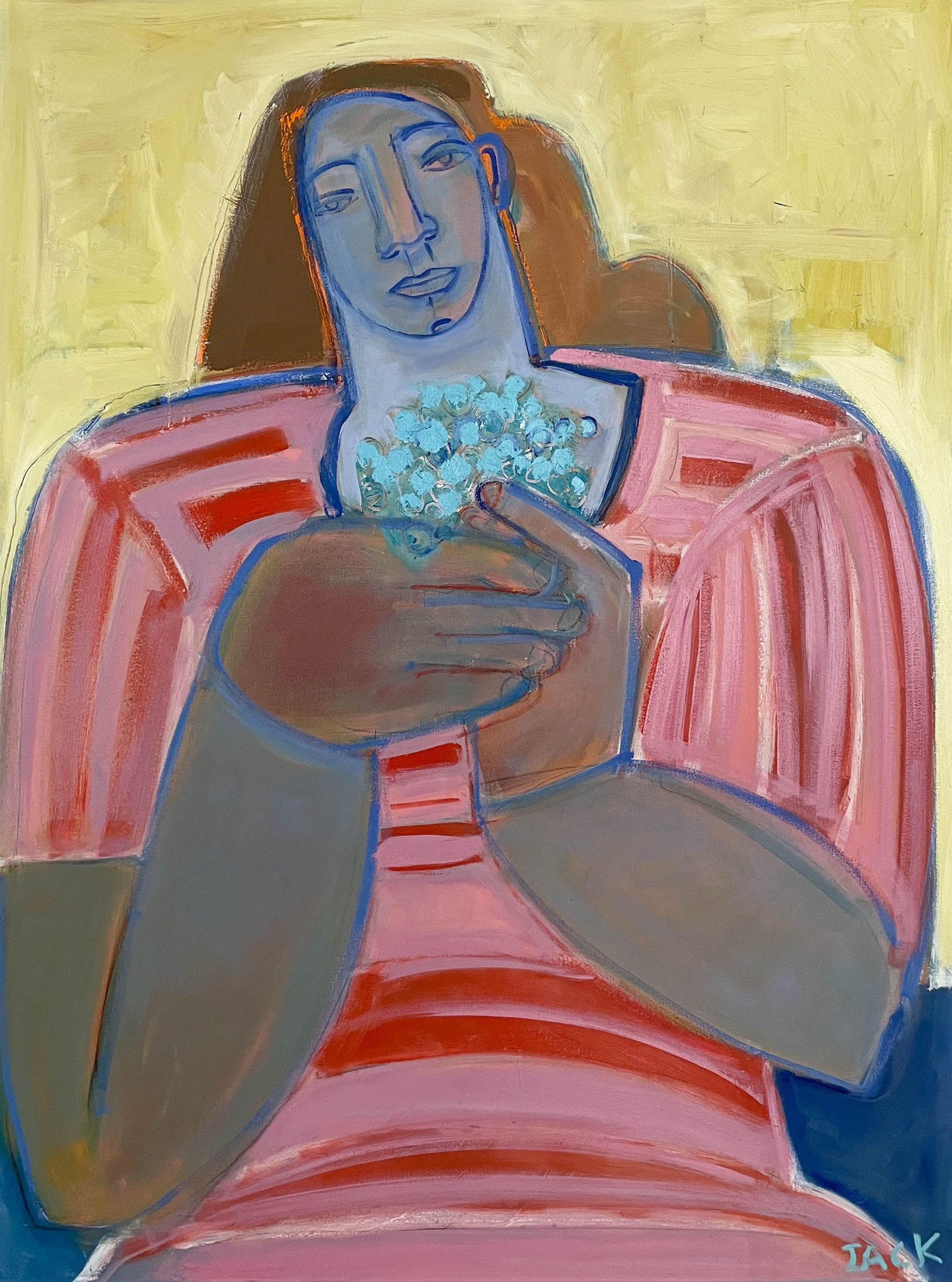 An intuitive artist, Rebecca Jack, paints vibrant figurative works that highlight the beauty of imperfection through visible layering, expressive brush work and mark making. Her figures are boldly unapologetic yet exude a quiet confidence and self-reflective quality. Originally from Knoxville, Tennessee, Jack grew up in an artistic household where she has been painting and drawing all her life. She received her bachelor’s degree at the University of Tennessee in Interior Design. Drawing from her love of design, Jack is inspired by color, pattern, shape and contrast. She is currently living in Atlanta with her husband and son.