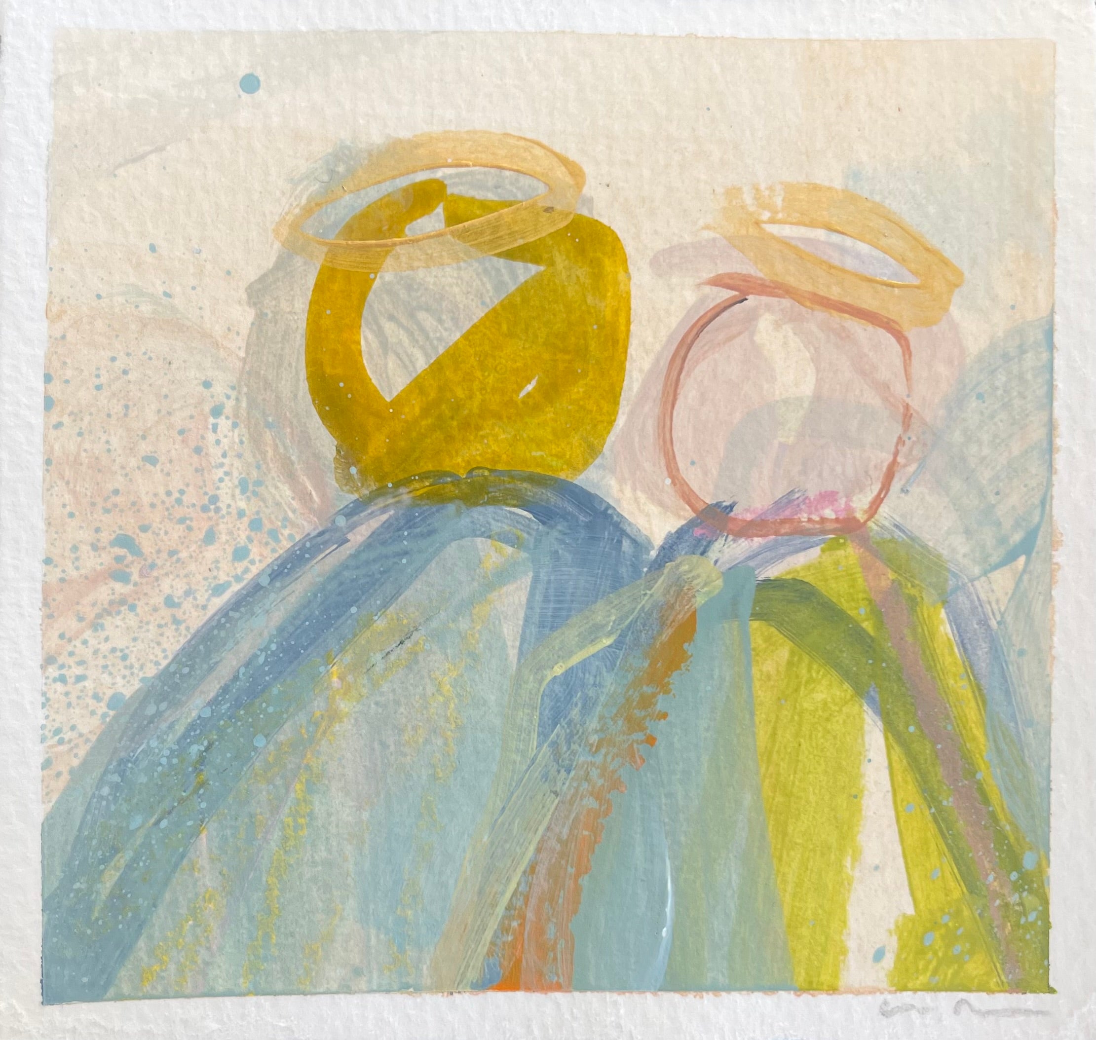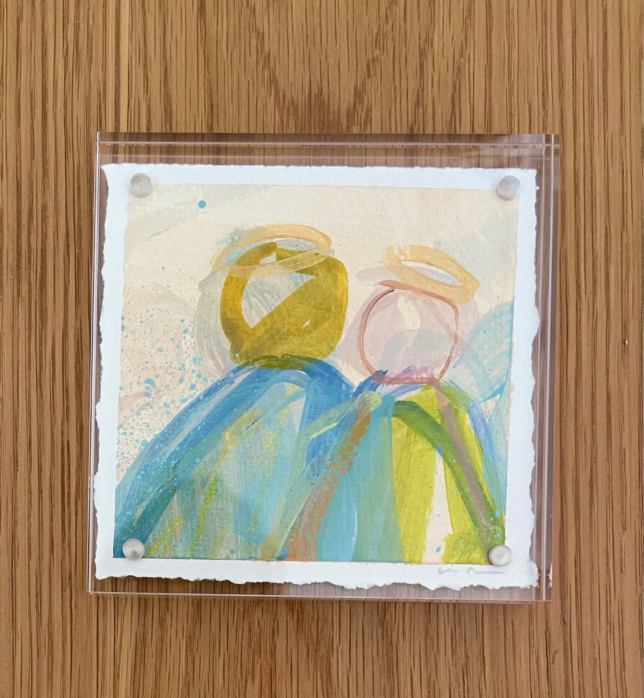 mixed media and watercolor on paper, in acrylic frame