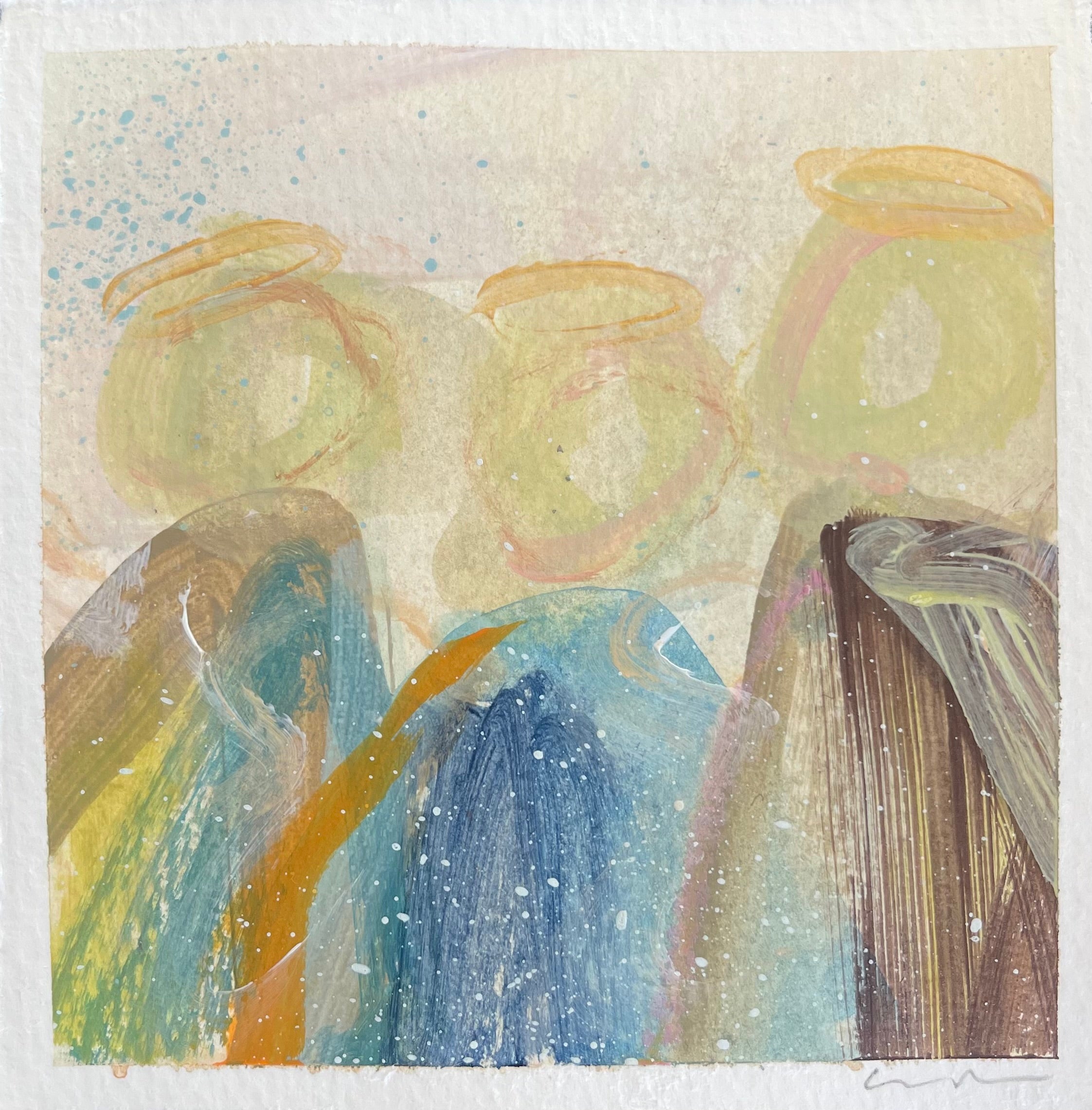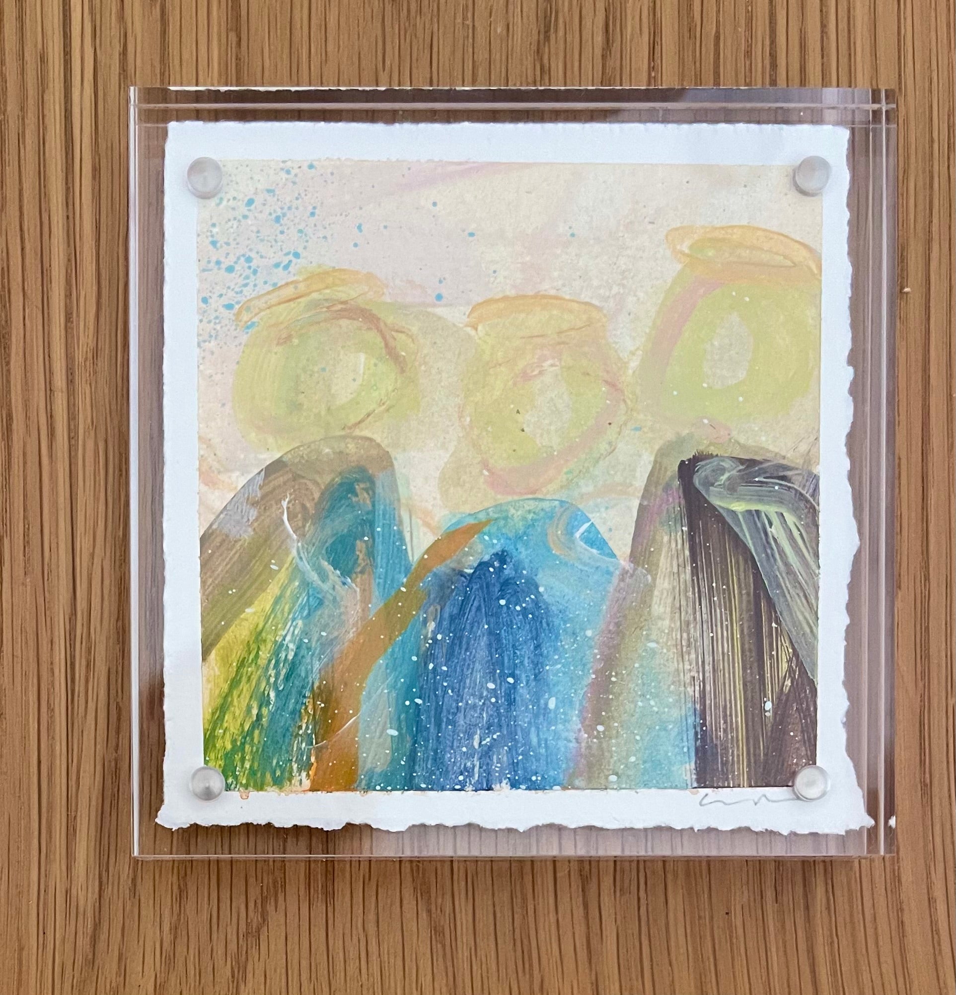 mixed media and watercolor on paper, in acrylic frame