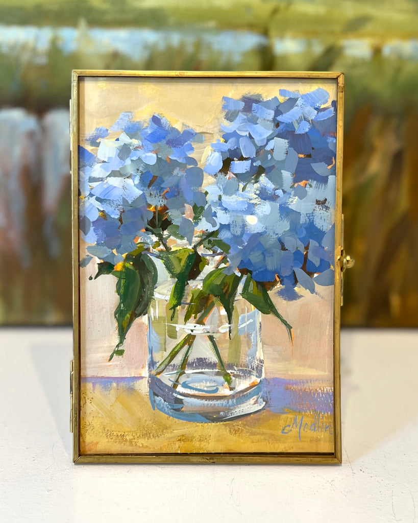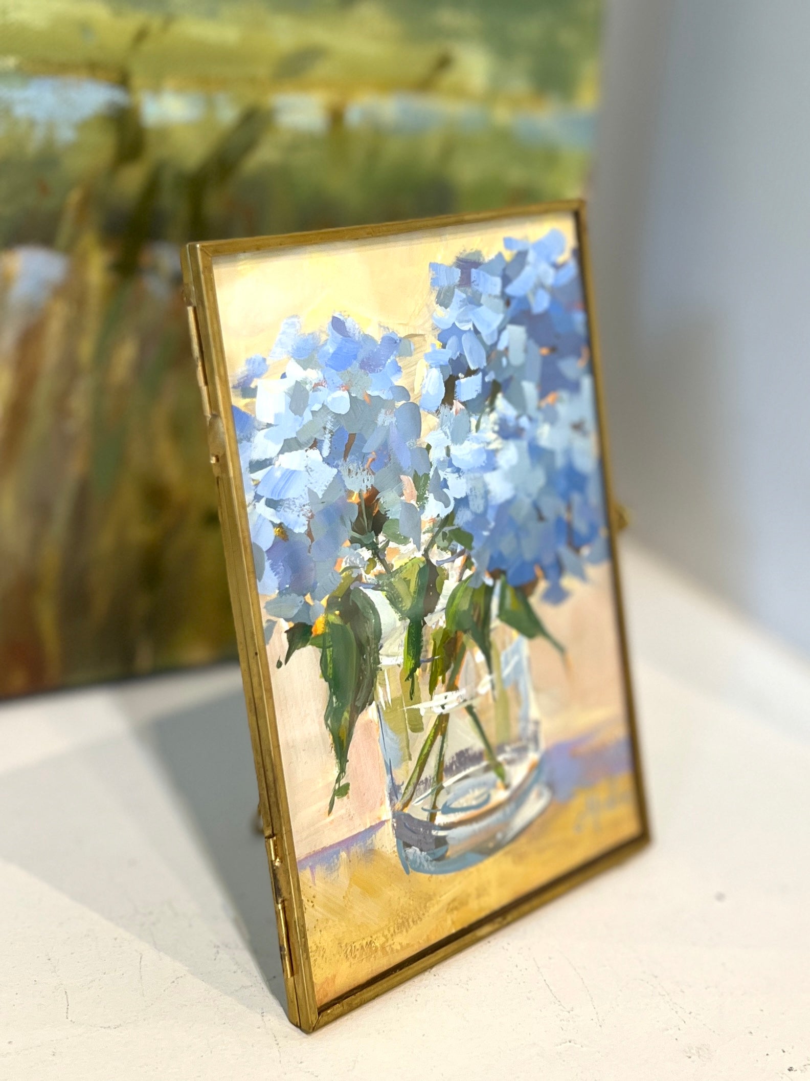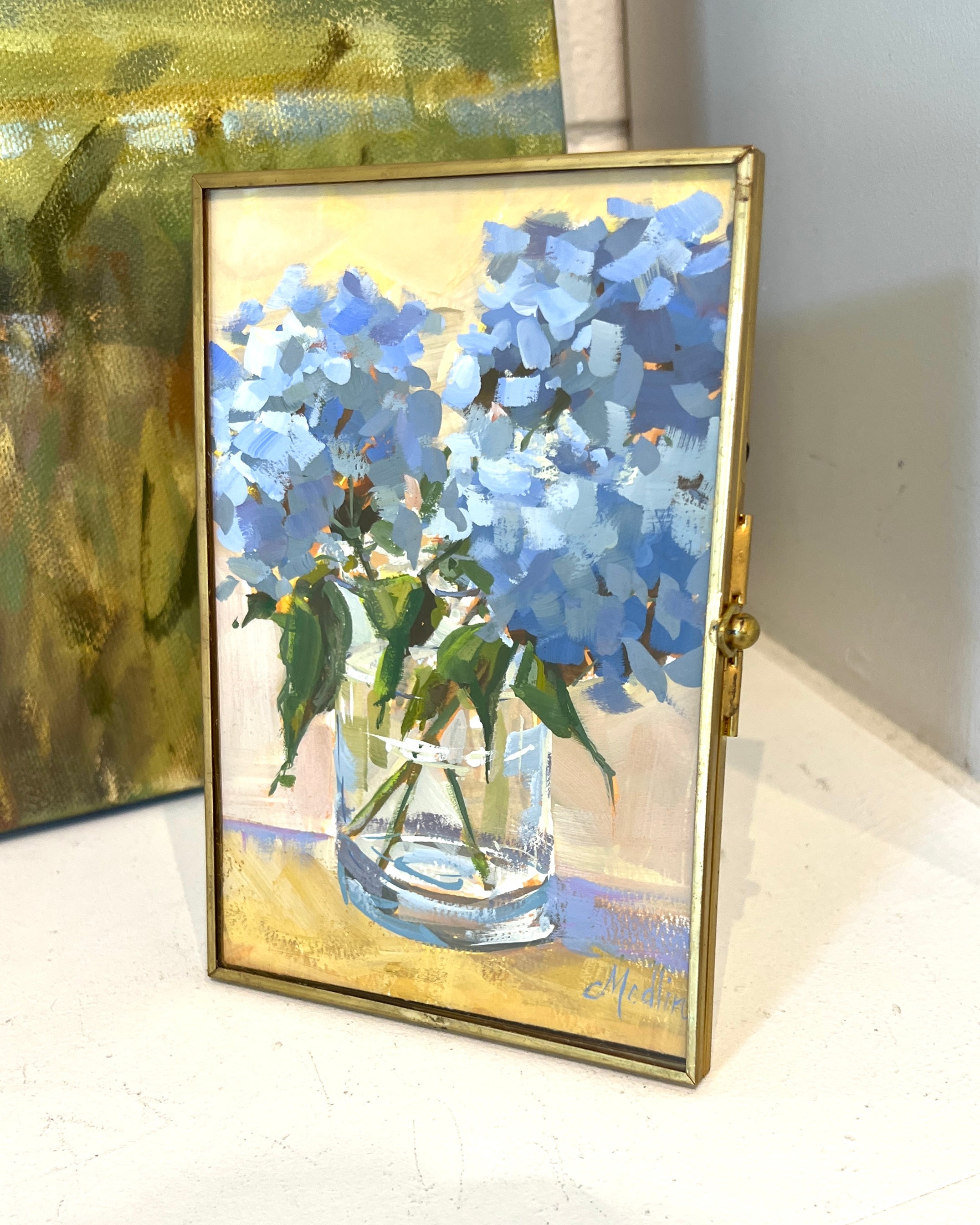 gouache on paper, in gold frame