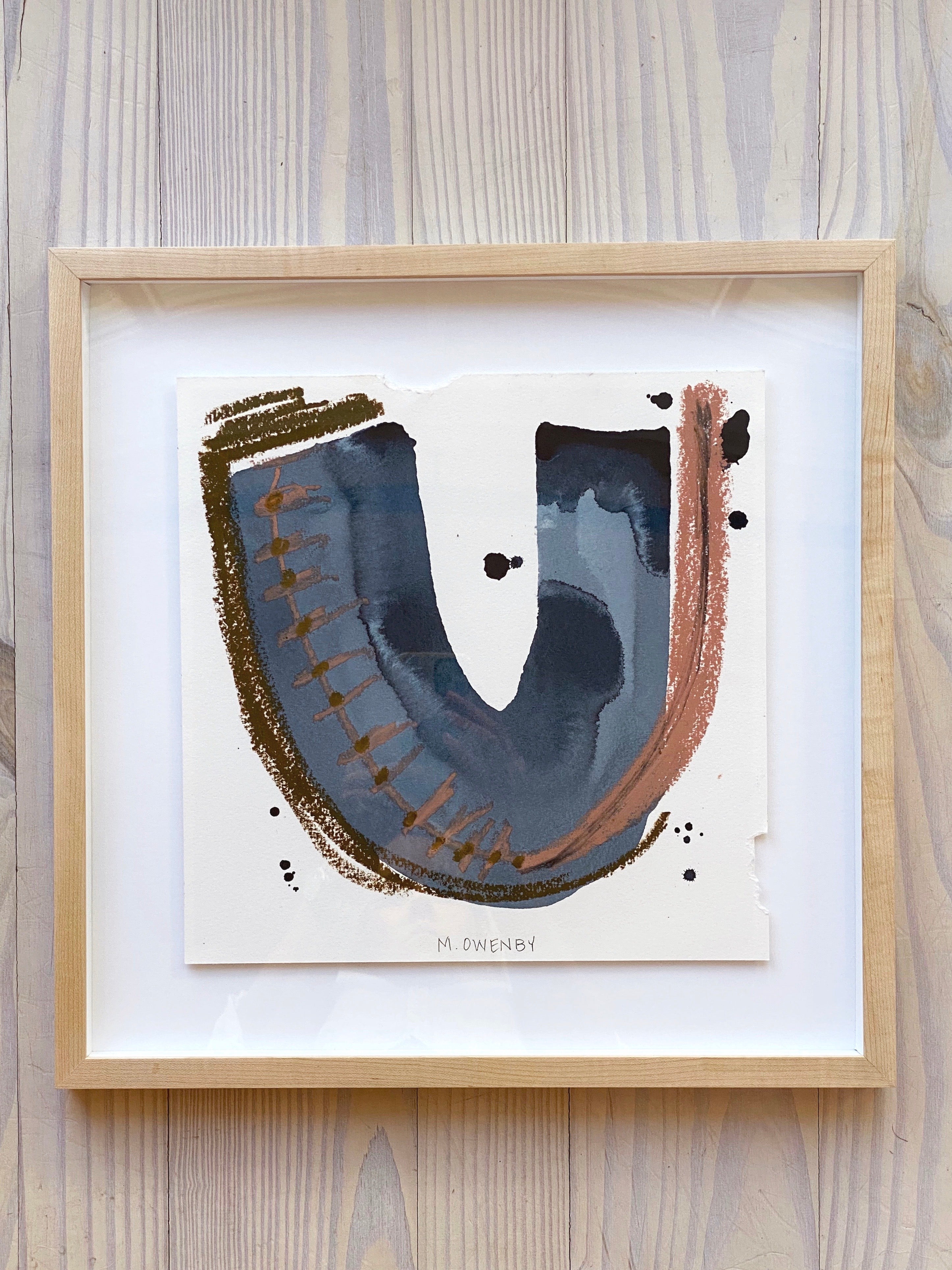 mixed media on paper, in maple floater frame