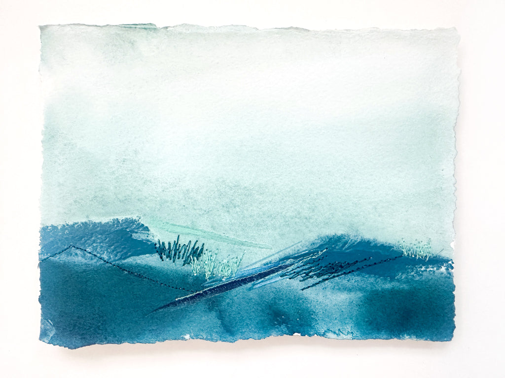 Deeann has a BFA from Memphis College of Art with a painting emphasis and has always been drawn to mixed media and collage. She took several fiber arts classes in college where she learned machine embroidery and sewing techniques. When she began working abstract a few years later, she combined these two techniques and found her own creative voice. She uses a sewing technique called free-motion machine embroidery on top of painted papers and incorporates those papers as collage.The stitched lines sit on top of fluid ink washes, colliding with bold paint scrapes and embellishing each piece with texture and delicate line, like veins running through the painting. “I am drawn to the tactility that the embroidery adds to the work both aesthetically and conceptually. The nature of thread is strong but intricate; it has a sort of permanence with the appearance of fragility.” Deeann has been in Nashville since 2018 and paints full time in her home studio with her two young daughters nearby.