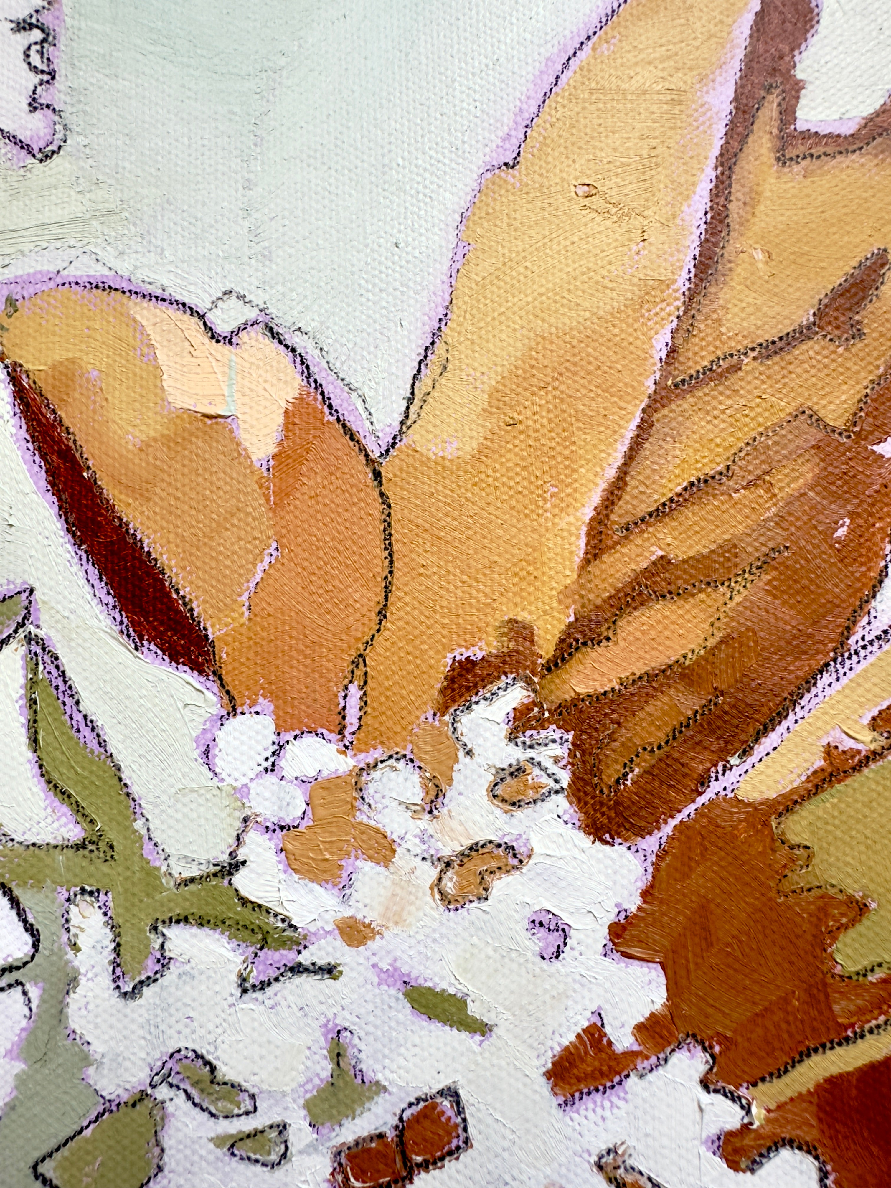 Pamela’s intention as a painter is to speak to the elegance of place and object; to use paint as a means to capture an image and then to reduce the noisy elements in landscape, botanical or interior subjects, by breaking down busy images into an economy of shape and hue. “I love a quiet place. I love to have the brain space to allow my mind and my eyes to soak in the images of my world. In the same manner, the image I want to paint must also speak to my need for simplicity and peace. Our world is a busy, loud and cluttered place. I can paint those elements out, leaving only lovely positive and negative shapes, made with colors that love to be together...” Painter and avid gardener who is fascinated with color, inspired by music, good reads and lessons to learn, Pamela works from her studio with windows that let in the woods of Northeast Georgia, where she lives with her husband Van, dog Tuck and friendly wildlife.