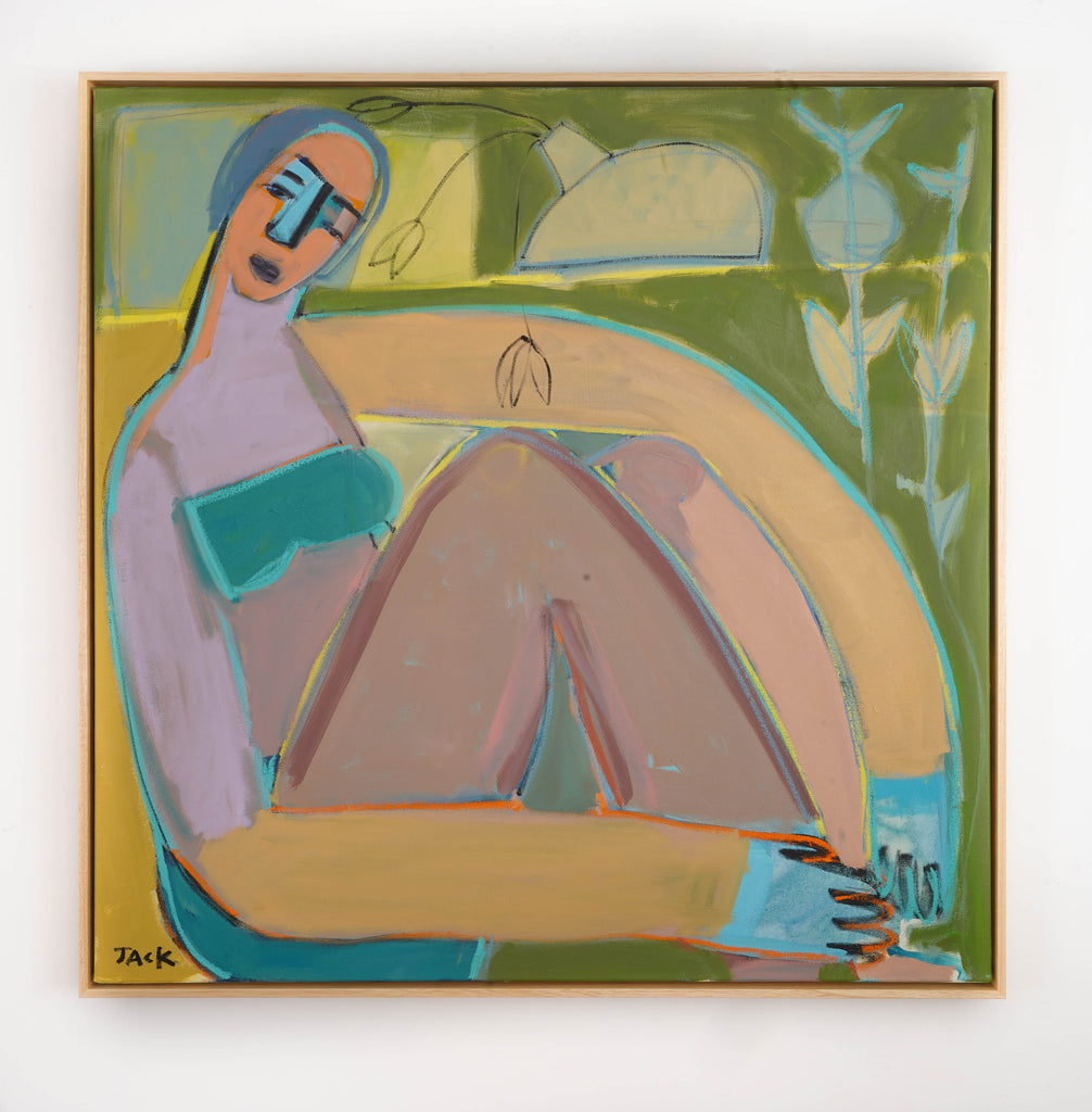 An intuitive artist, Rebecca Jack, paints vibrant figurative works that highlight the beauty of imperfection through visible layering, expressive brush work and mark making. Her figures are boldly unapologetic yet exude a quiet confidence and self-reflective quality. Originally from Knoxville, Tennessee, Jack grew up in an artistic household where she has been painting and drawing all her life. She received her bachelor’s degree at the University of Tennessee in Interior Design. Drawing from her love of design, Jack is inspired by color, pattern, shape and contrast. She is currently living in Atlanta with her husband and son.