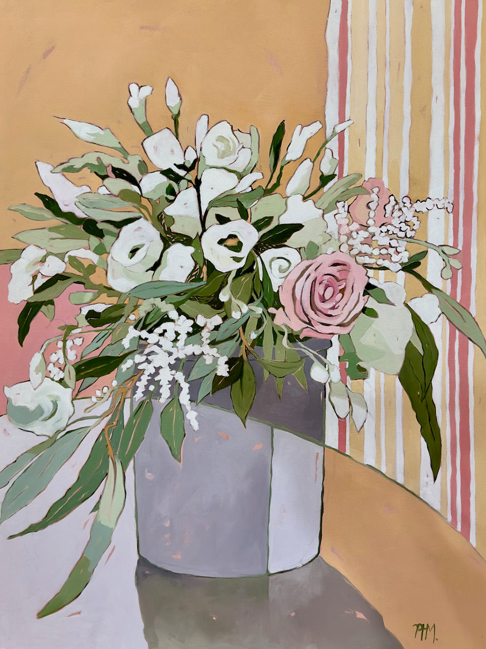 Pamela’s intention as a painter is to speak to the elegance of place and object; to use paint as a means to capture an image and then to reduce the noisy elements in landscape, botanical or interior subjects, by breaking down busy images into an economy of shape and hue. “I love a quiet place. I love to have the brain space to allow my mind and my eyes to soak in the images of my world. In the same manner, the image I want to paint must also speak to my need for simplicity and peace. Our world is a busy, loud and cluttered place. I can paint those elements out, leaving only lovely positive and negative shapes, made with colors that love to be together...” Painter and avid gardener who is fascinated with color, inspired by music, good reads and lessons to learn, Pamela works from her studio with windows that let in the woods of Northeast Georgia, where she lives with her husband Van, dog Tuck and friendly wildlife.