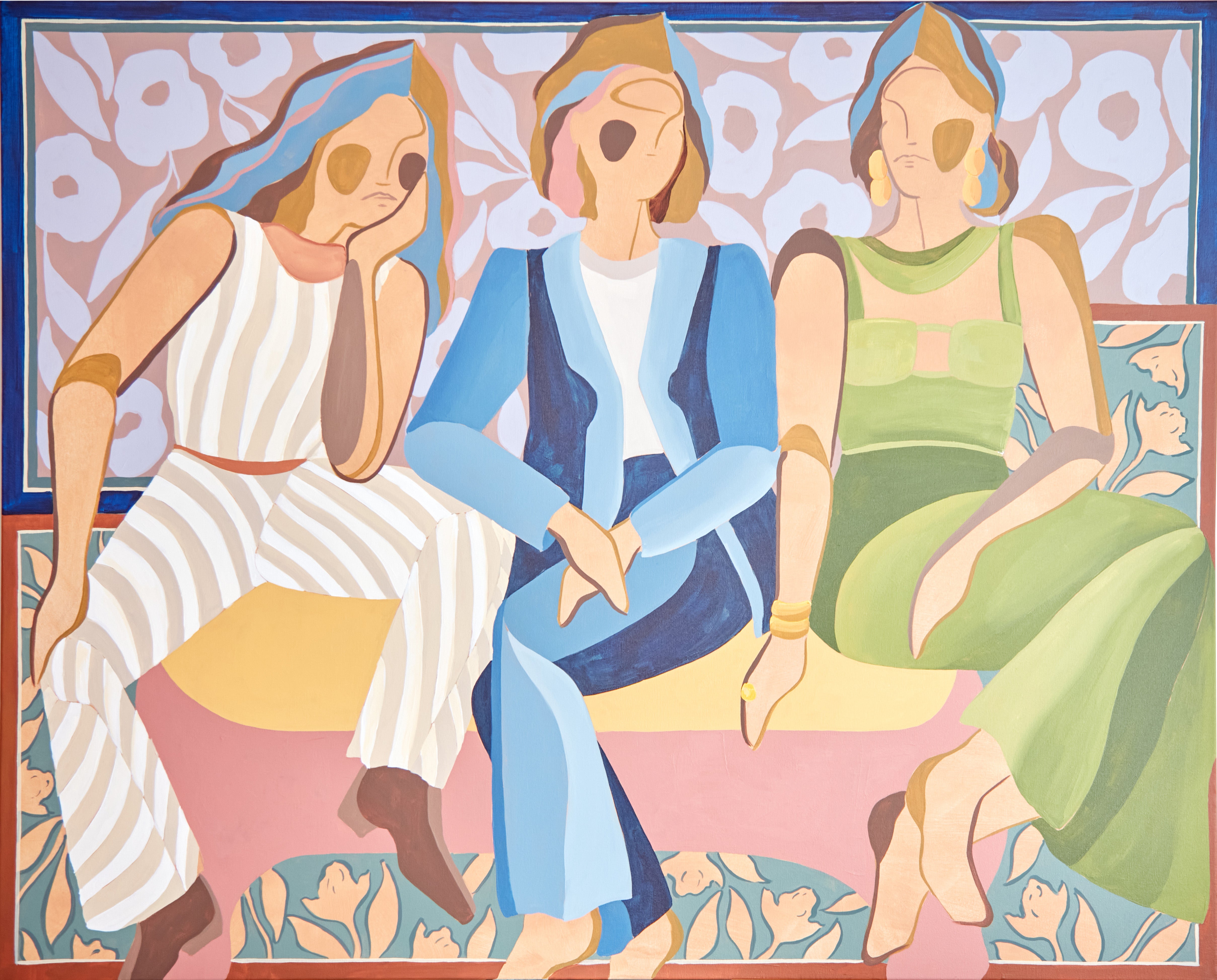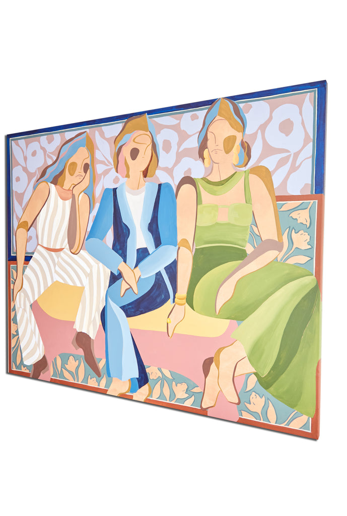My name is Lizzy Love and I'm an artist in Nashville, TN. I create figurative works on canvas with acrylic paint and papers with watercolor and gouache. This body of work has been a rebirth for me creatively. While I've been painting full time for the last 5 years, I feel like I've really come into myself creatively with my figurative paintings. Born out of a time of uncertainty and lots of questioning, I was pushed to dig deep and get back to basics. I decided to switch gears from painting the landscapes, for which I had been primarily making for years. As an effort to get my creative spark back, I started sketching figures from magazines, a subject I hadn’t explored in a long time. Over many months they slowly evolved into what they have become; starting from detailed and realistic, to more abstract and modernist. I am a big believer that the environment of your home shapes your attitude, and for that reason I love interior design. That love is what led me to start incorporating furniture / interior surroundings / and patterns into the pieces. I pull apart and put back together the lines and shapes of many of my favorite interiors, and place them amongst the figures in a dynamic way. These ladies embody many things - community, respect, femininity, reverence. They are a way to draw attention to what being a woman entails. Many times it means being fierce and strong. Many times it means leaning on and drawing your strength from friends that are like family. While creating each piece, I draw upon the love and reverence I have for all the women in my life; the women who have shaped me, lifted me up when I needed it, laughed with me, and inspired me.