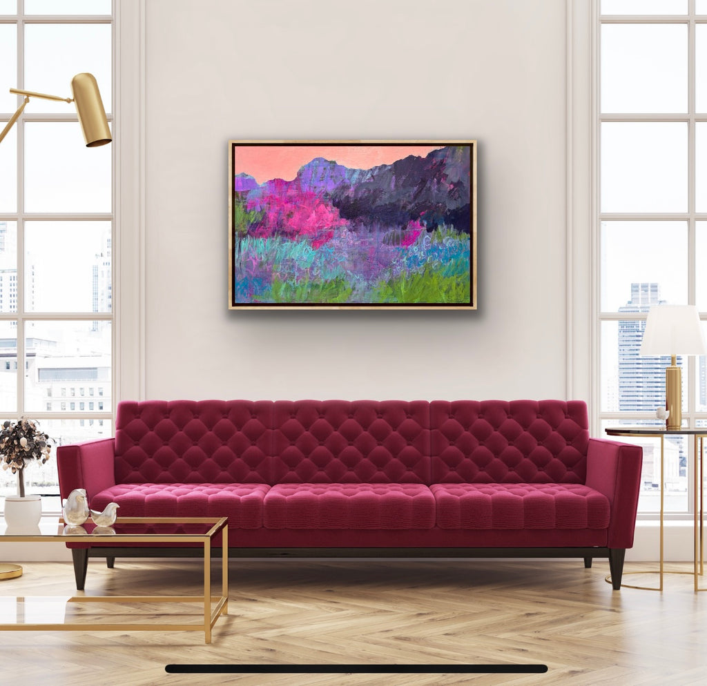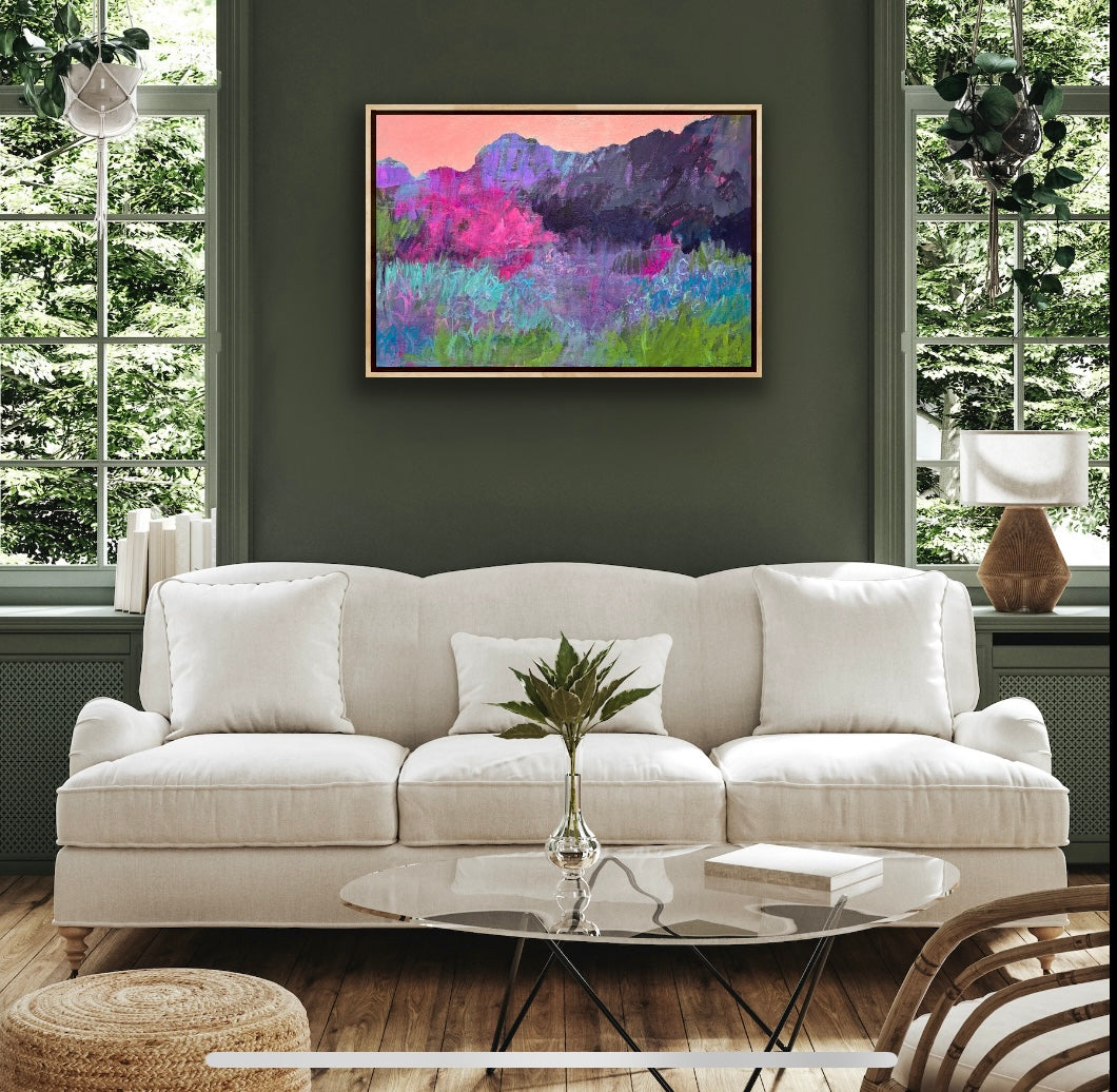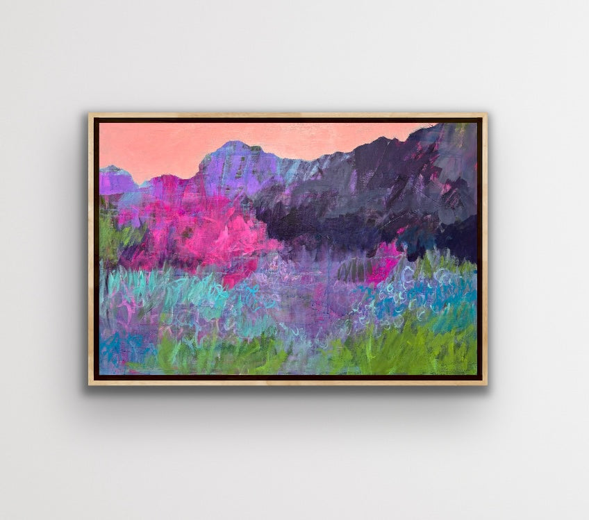 acrylic on gallery wrapped canvas, in painted gold leaf frame