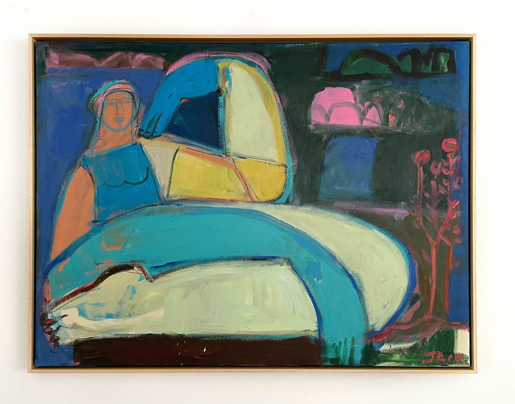 An intuitive artist, Rebecca Jack, paints vibrant figurative works that highlight the beauty of imperfection through visible layering, expressive brush work and mark making. Her figures are boldly unapologetic yet exude a quiet confidence and self-reflective quality. Originally from Knoxville, Tennessee, Jack grew up in an artistic household where she has been painting and drawing all her life. She received her bachelor’s degree at the University of Tennessee in Interior Design. Drawing from her love of design, Jack is inspired by color, pattern, shape and contrast. She is currently living in Atlanta with her husband and son.