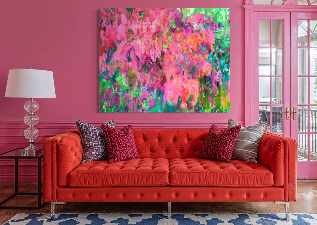Elizabeth Bernheisel’s art explores the boundless potential of color, shape, and line, which are deeply intertwined with her life experiences. Inspired by her grandfather, an artist, and successful entrepreneur, she pursued creative businesses for many years before discovering her love of abstract painting. Primarily self-taught, she honed her style by studying with master artists and experimenting with various media and styles. Her vibrant and expressive work mirrors her passion for beautiful interiors, lush gardens, and the decorative arts. Born and raised in the DC Metro area, she moved to sunny South Florida in 2020, embracing a full-time career as an abstract painter. She quickly became active in the local art scene, showcasing her work at local galleries and Miami Art Week. Her work has garnered attention, being featured in prestigious publications such as Modern Luxury, Luxe, and Palm Beach Illustrated, as well as the Serena & Lily website and design shops Elizabeth continues to create captivating artworks that inspire and delight in her bright, spacious studio in the Warehouse District of West Palm Beach, Florida.