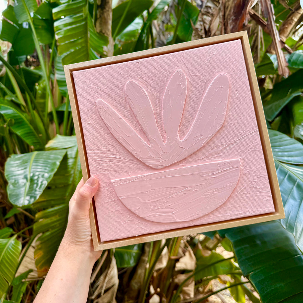 Totally tropical Lisa Kaw shares her love for nature and travel through her vibrant paintings. From her South Florida jungalow, she uses acrylic on canvas to transform the beauty around her into tangible one of a kind treasures. A minimalist at heart, Lisa thrives best when surrounded only by the blues and greens of the natural world and the curious melody of the rainforest chatter. Bali and the Big Island of Hawaii are her most sacred visited places. With a playful palette and a joyful spirit, Lisa Kaw creates work that simply and purely communicates the wonder of our natural world.