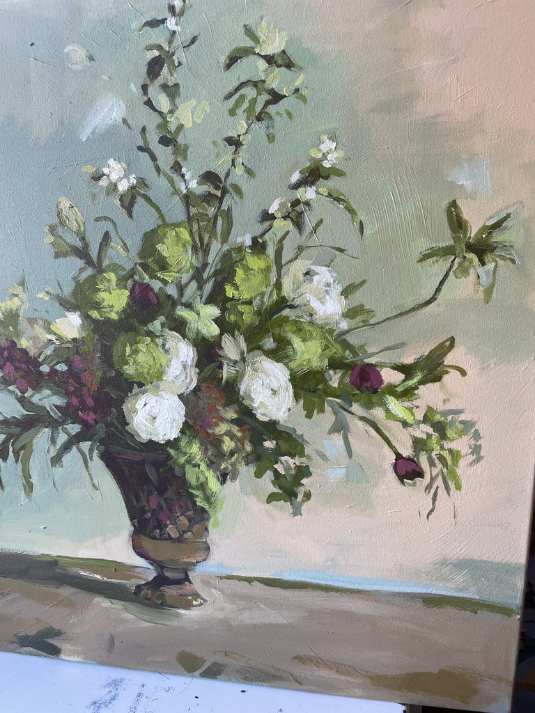 Christine hopes to create artwork that strikes the balance of fun and timeless, in an effortless manner. Composition and color harmony are a distinctive part of her work. Her palettes and subject matter are heavily influenced by her upbringing along the east coast of Florida. She hopes to bring everyday scenes to life through a new perspective and unexpected moments of color. Christine paints entirely from the three primaries (red, yellow + blue) and white. This has helped her gain a strong understanding of color theory.