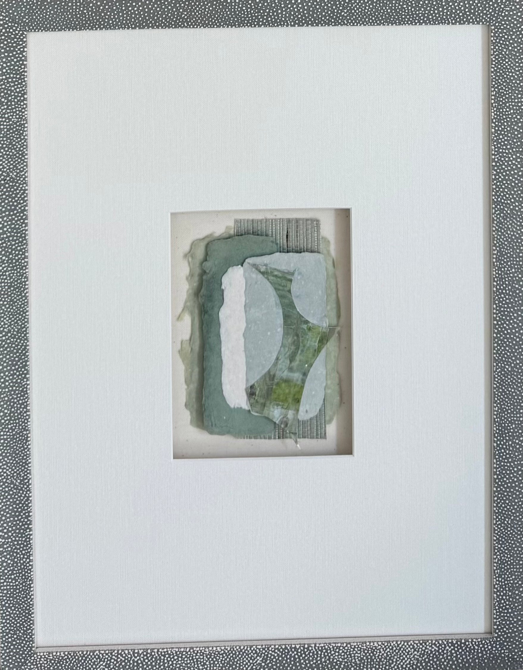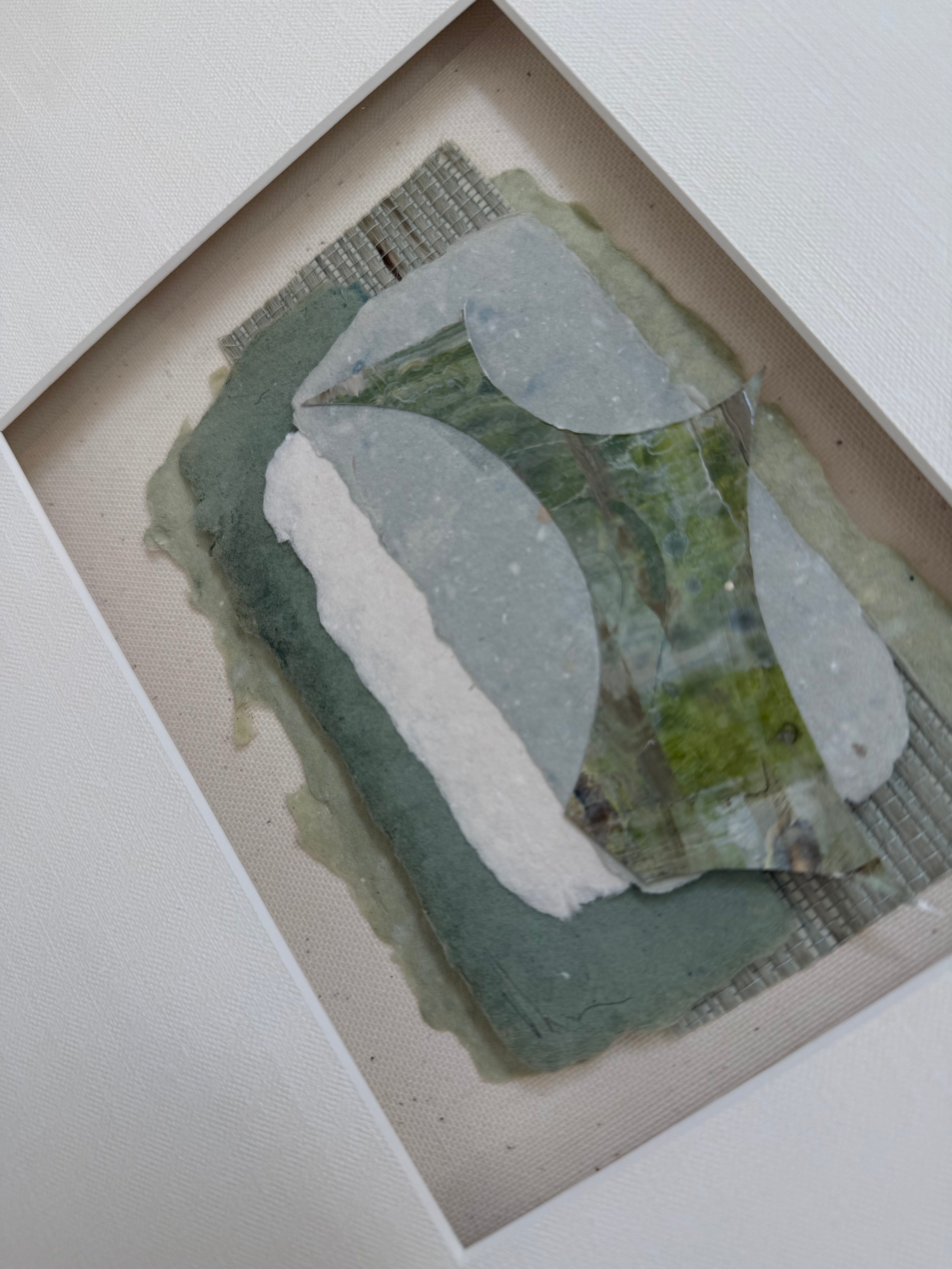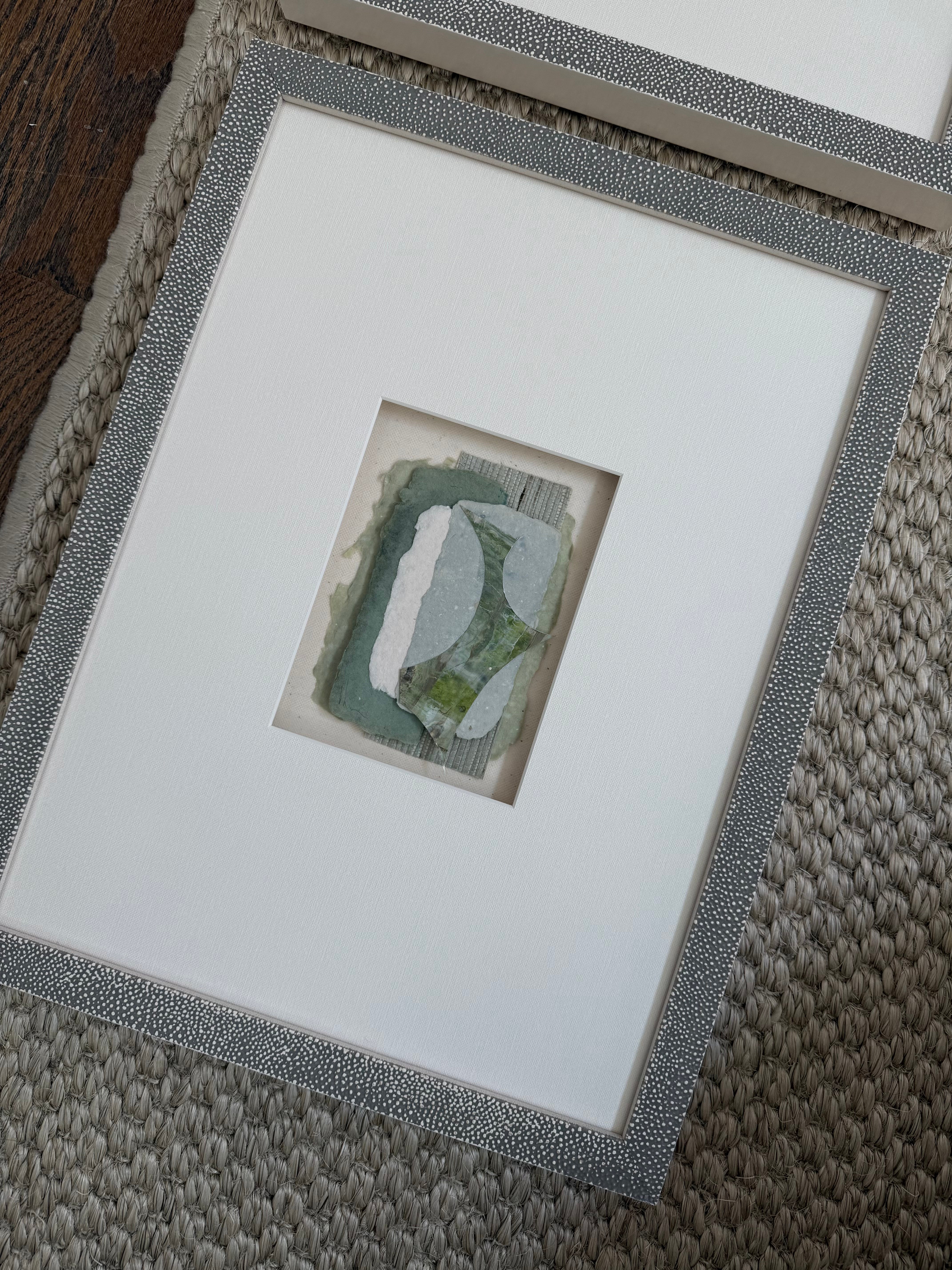 mixed media collage in white mat and custom frame