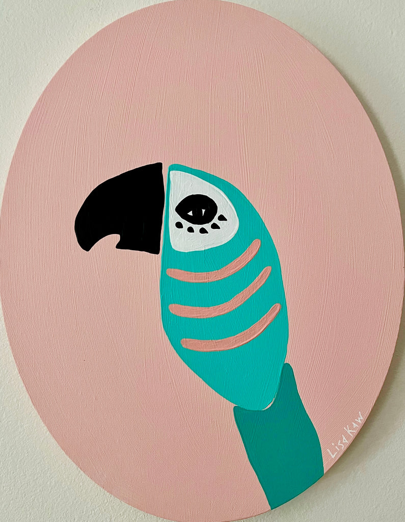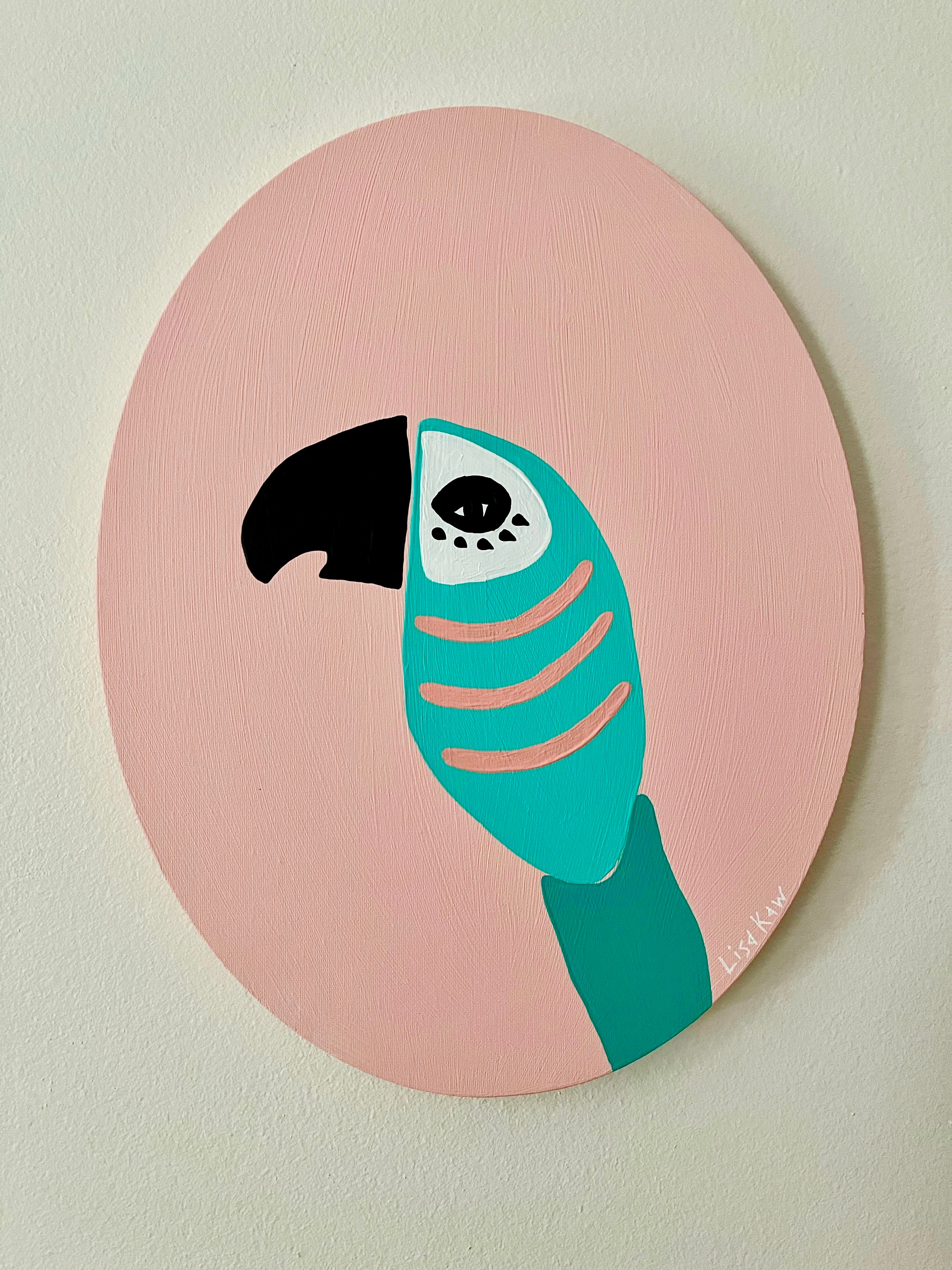 Totally tropical Lisa Kaw shares her love for nature and travel through her vibrant paintings. From her South Florida jungalow, she uses acrylic on canvas to transform the beauty around her into tangible one of a kind treasures. A minimalist at heart, Lisa thrives best when surrounded only by the blues and greens of the natural world and the curious melody of the rainforest chatter. Bali and the Big Island of Hawaii are her most sacred visited places. With a playful palette and a joyful spirit, Lisa Kaw creates work that simply and purely communicates the wonder of our natural world.