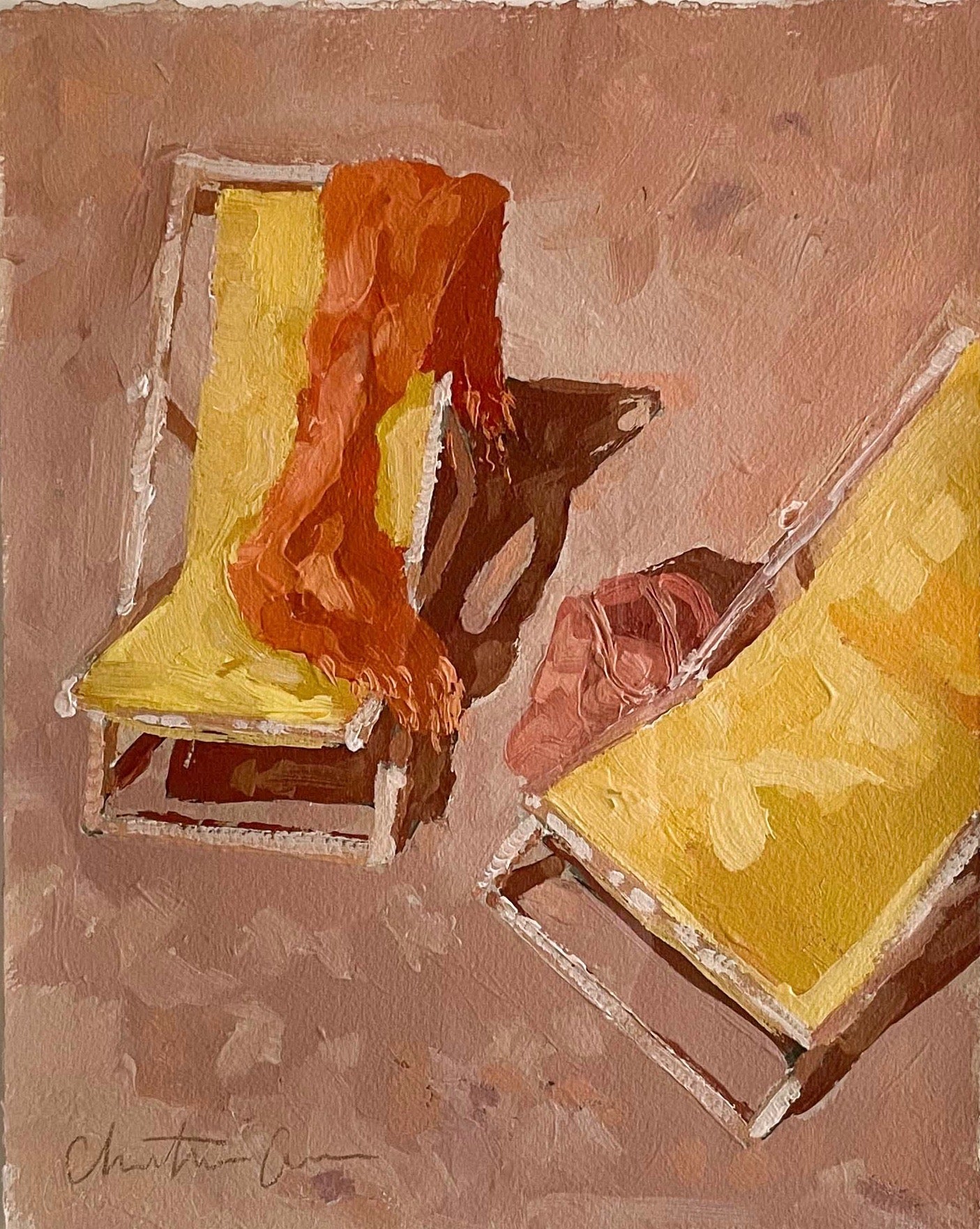 Christine hopes to create artwork that strikes the balance of fun and timeless, in an effortless manner. Composition and color harmony are a distinctive part of her work. Her palettes and subject matter are heavily influenced by her upbringing along the east coast of Florida. She hopes to bring everyday scenes to life through a new perspective and unexpected moments of color. Christine paints entirely from the three primaries (red, yellow + blue) and white. This has helped her gain a strong understanding of color theory.